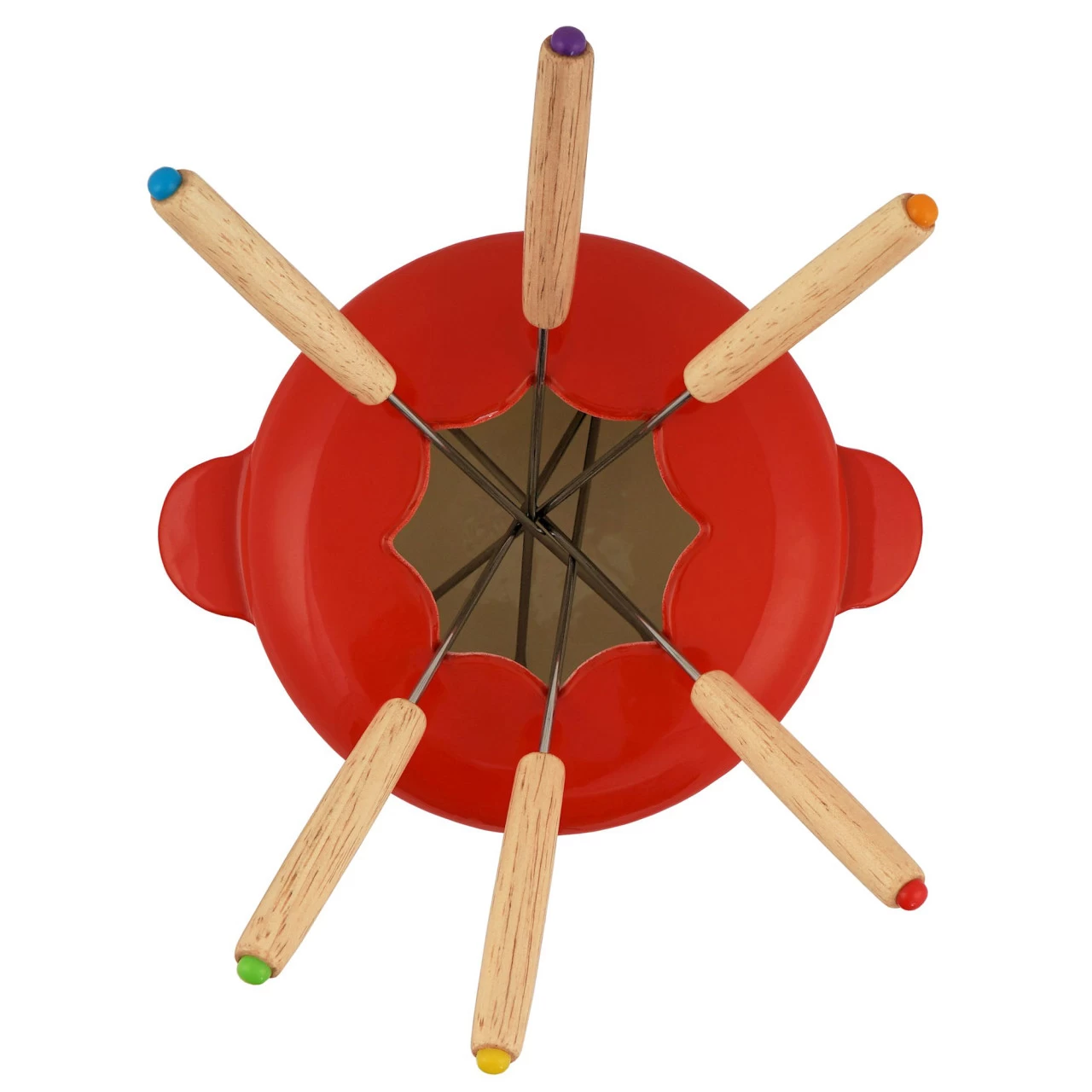 – Lieferumfang: 1x Fonduetopf, 1x Fonduedeckel, 1x Rechaud, 1x Brenner, 6x Fonduegabel