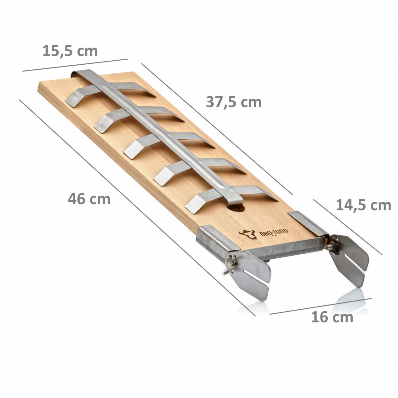 Nutzen Sie die Hitze Ihrer Feuerschale für langsam und schonend gegarten, saftigen Lachs während Sie gemütlich am offenen Feuer sitzen. Der Halter ist einfach in der Anwendung und für Feuerschalen, Grills und Kugelgrills geeignet.