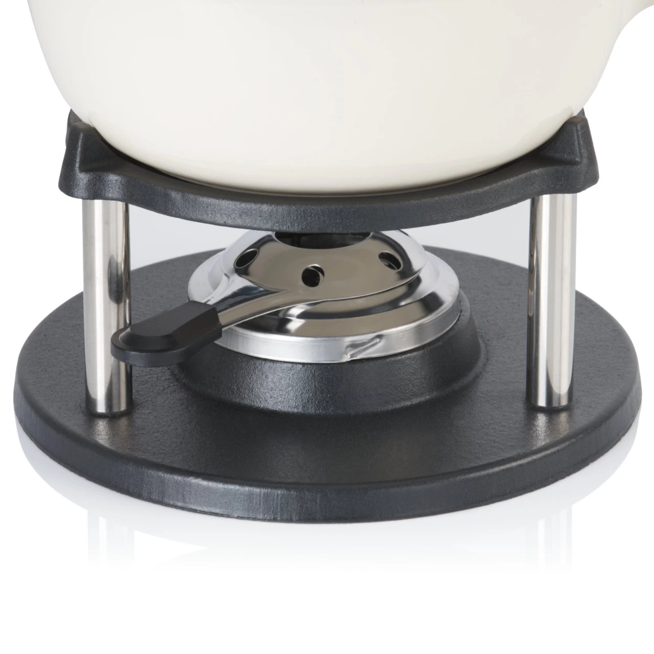 Das stabile Rechaud aus Gusseisen bietet sicheren Stand für den Topf und den optimalen Abstand zum Brenner. Der Brennpastenbehälter hat einen Flammenverteiler, um die Temperatur optimal zu regulieren sowie einen Deckel, um die Flamme sicher zu löschen.
