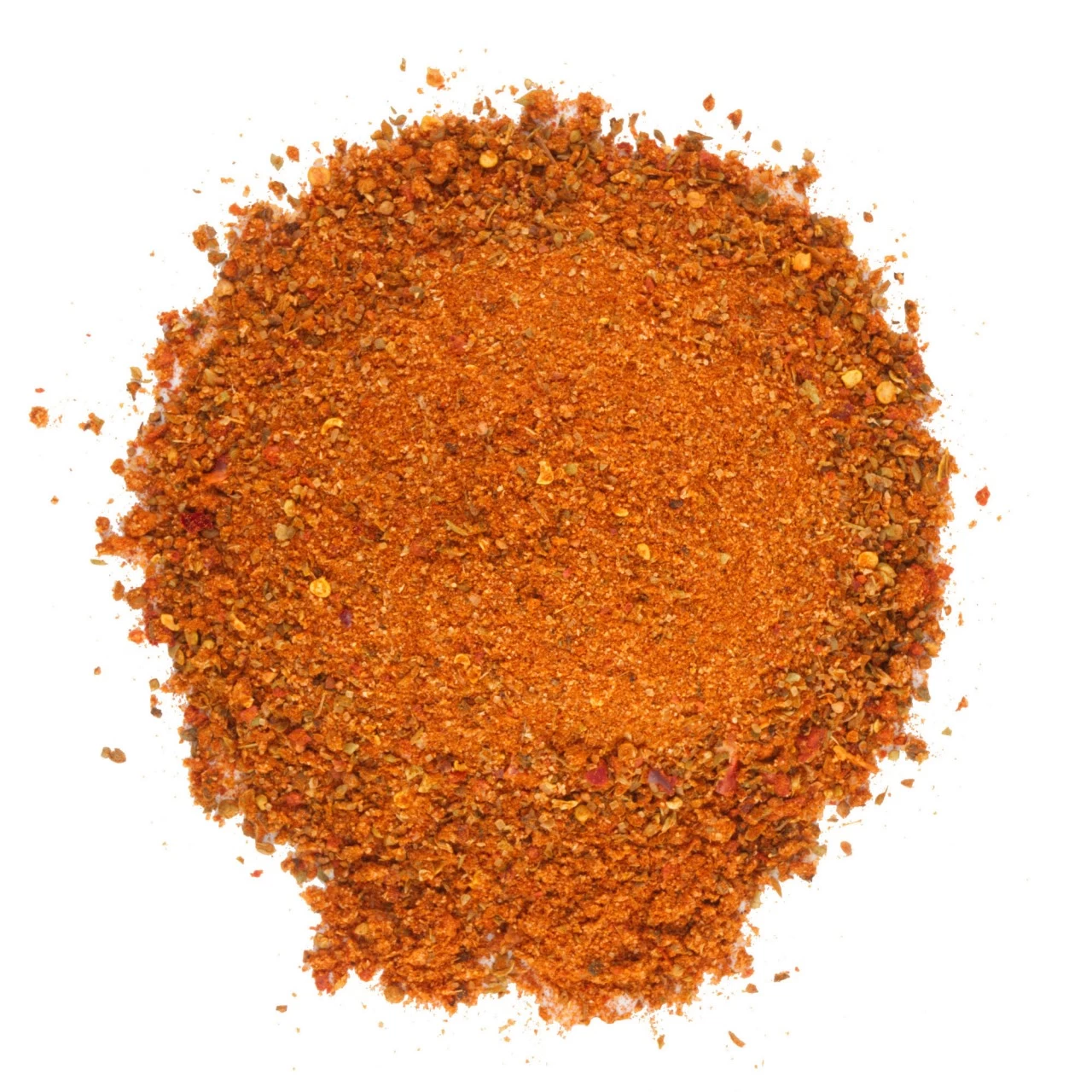 Zutaten: Gewürze (Paprika, Knoblauch, Jalapenos, Pfeffer, Zwiebel, Chili, Cumin, Piment), Speisesalz, Kräuter (Oregano, Rosmarin), Rohrzucker