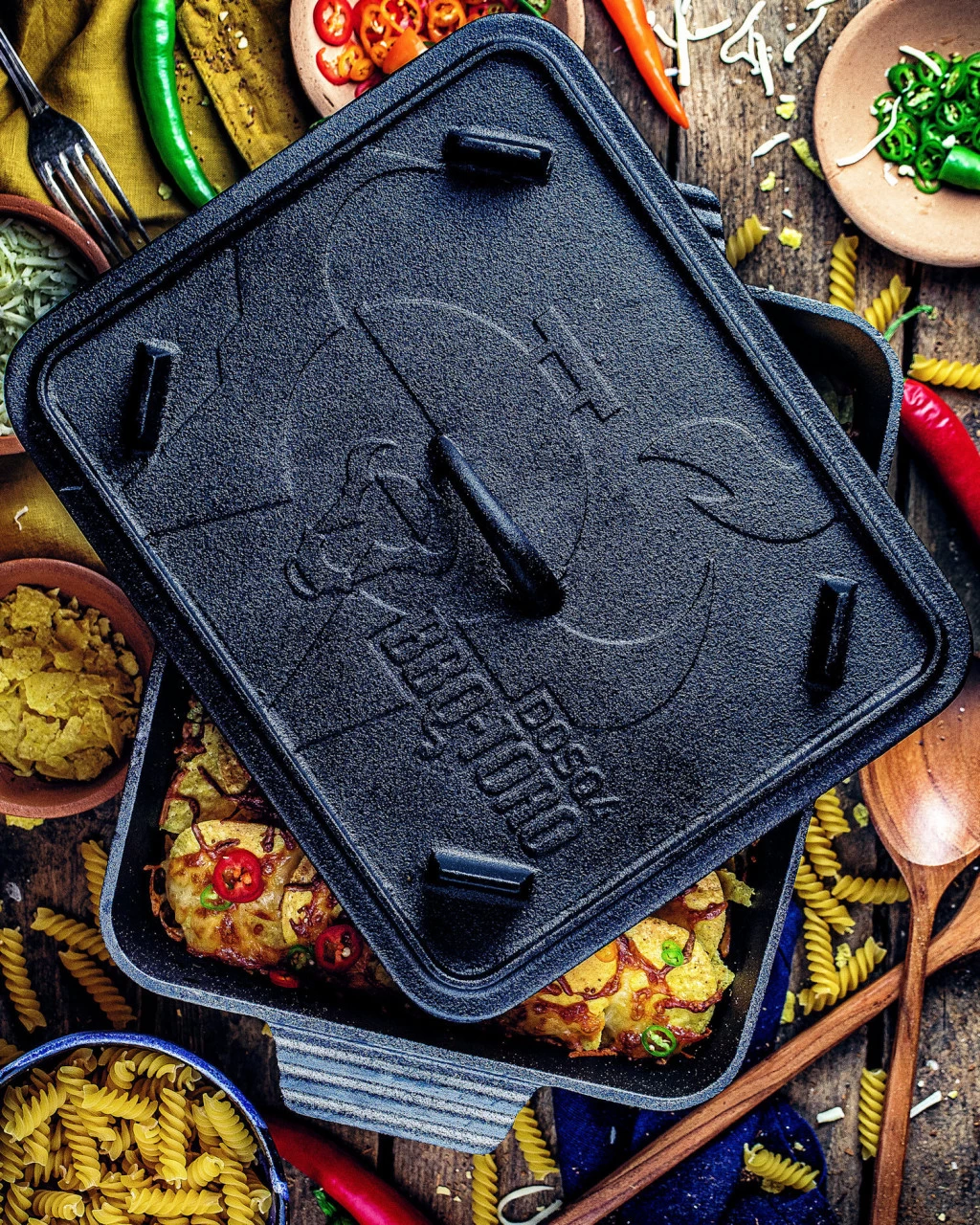 Im Dutch Oven gelingen so kinderleicht Gerichte wie Schmorbraten, Eintöpfe, Brot, Kuchen und vieles mehr. Egal ob Feuerstelle, Grillplatz oder Lagerfeuer, der Gusstopf ist mobil und flexibel einsetzbar. Speisen wie z.B. Fleisch werden im Dutch Oven einmalig zart und entwickeln ein herausragendes Aroma – Sie werden begeistert sein!