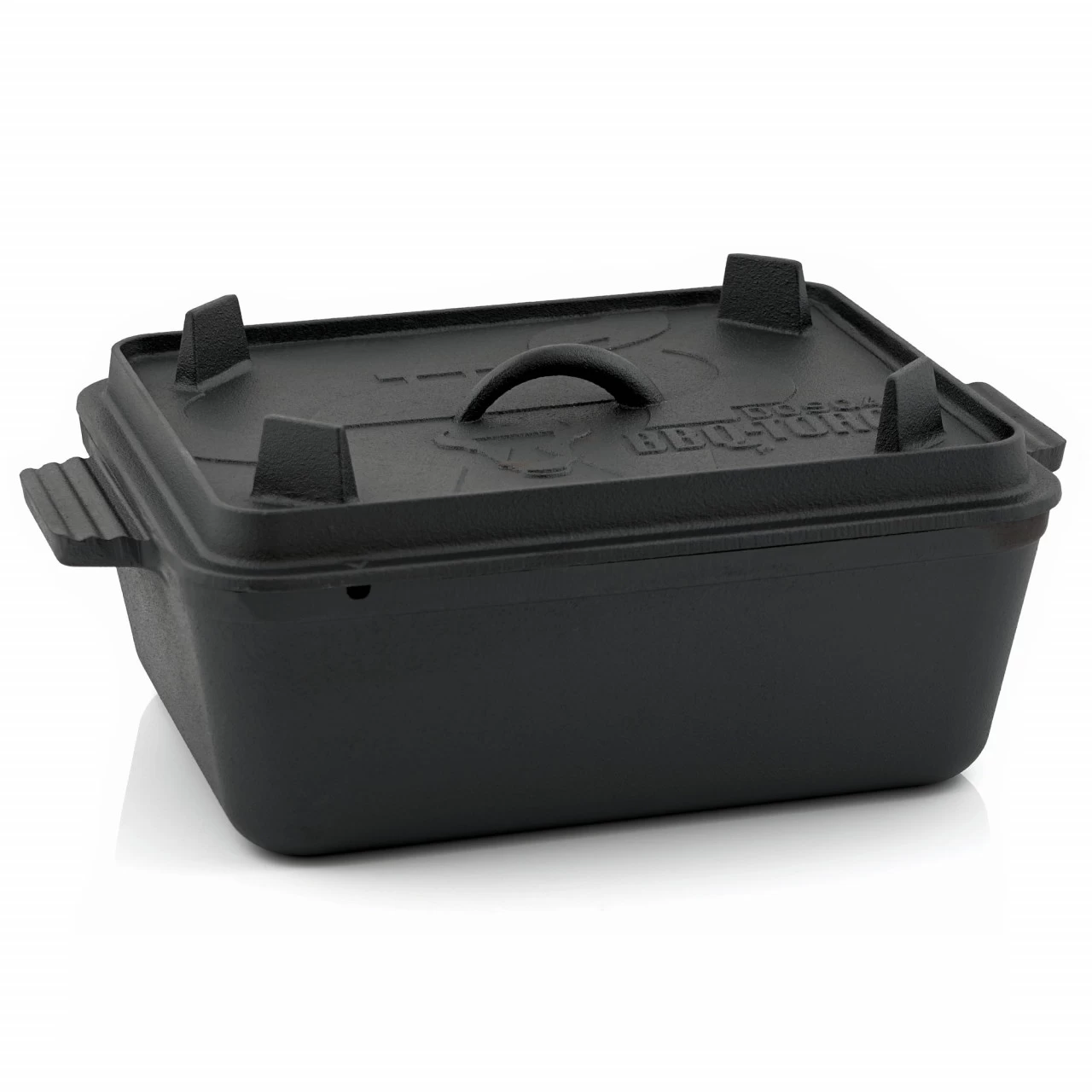 Der Dutch Oven ist ein schwerer, traditioneller, gusseiserner Topf und ein exakt passender Deckel, mit dem man überall kochen, braten, schmoren, frittieren, dünsten und backen kann. Der Dutch Oven reguliert dank seiner hohen Masse (Gusseisen) ungleichmäßige Hitze und ermöglicht so ein gleichmäßiges Garen. Einfach glühende Kohlen, Glut oder Grillbriketts auf den Deckel und unter den Topf geben und das Dutch Oven Erlebnis kann losgehen.