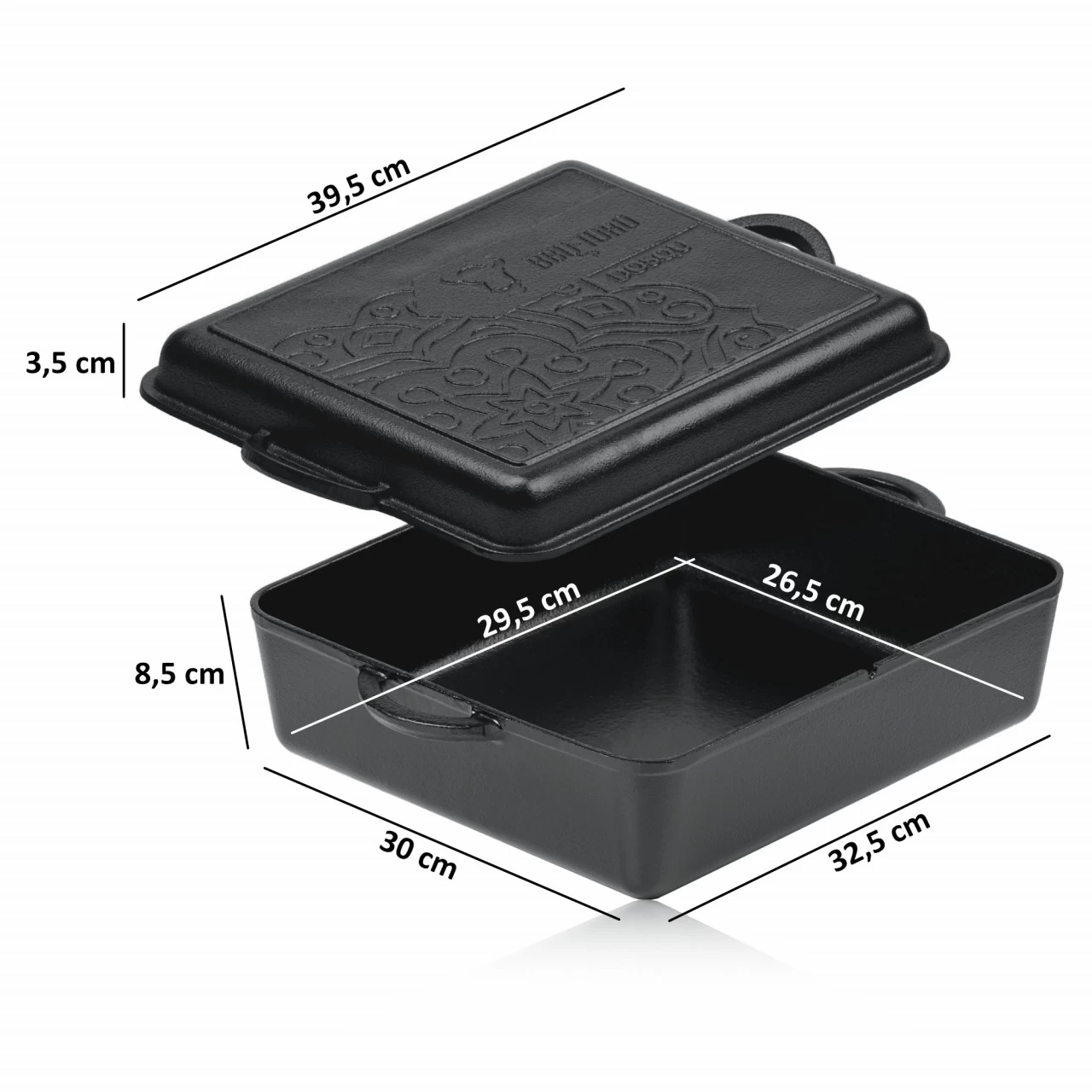 Ein schwerer, traditioneller, gusseiserner Topf und ein exakt passender Deckel mit dem man überall kochen, braten, schmoren, frittieren, dünsten und backen kann. Egal ob Feuerstelle, Grillplatz oder Lagerfeuer, er ist mobil und flexibel einsetzbar.