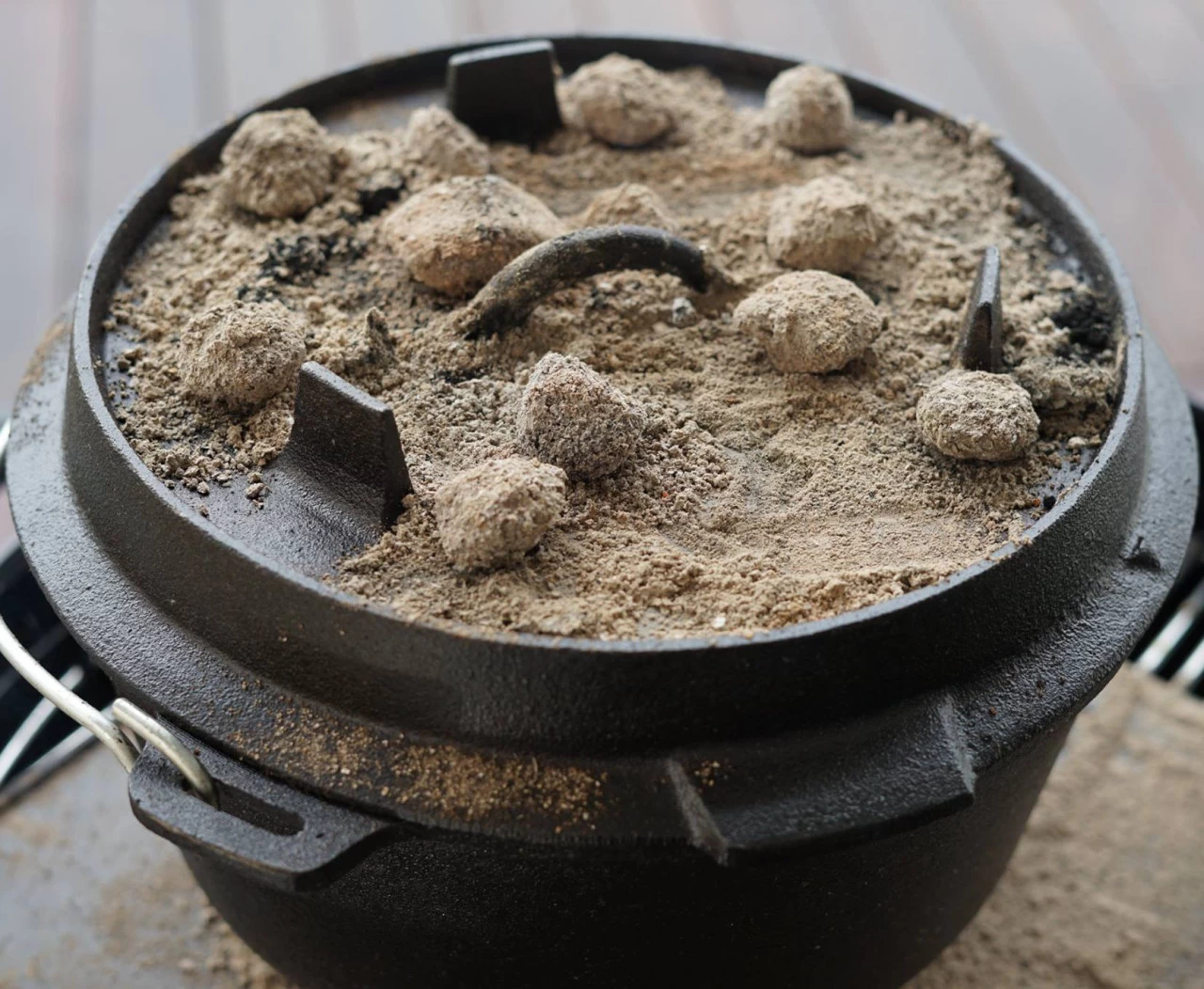 Die Besonderheit dieses Dutch Ovens ist, dass neben dem konischen Rand des Deckels auch die Auflagefläche des Deckels am Topf abgeschliffen ist. So schließt der Feuer Topf noch besser.