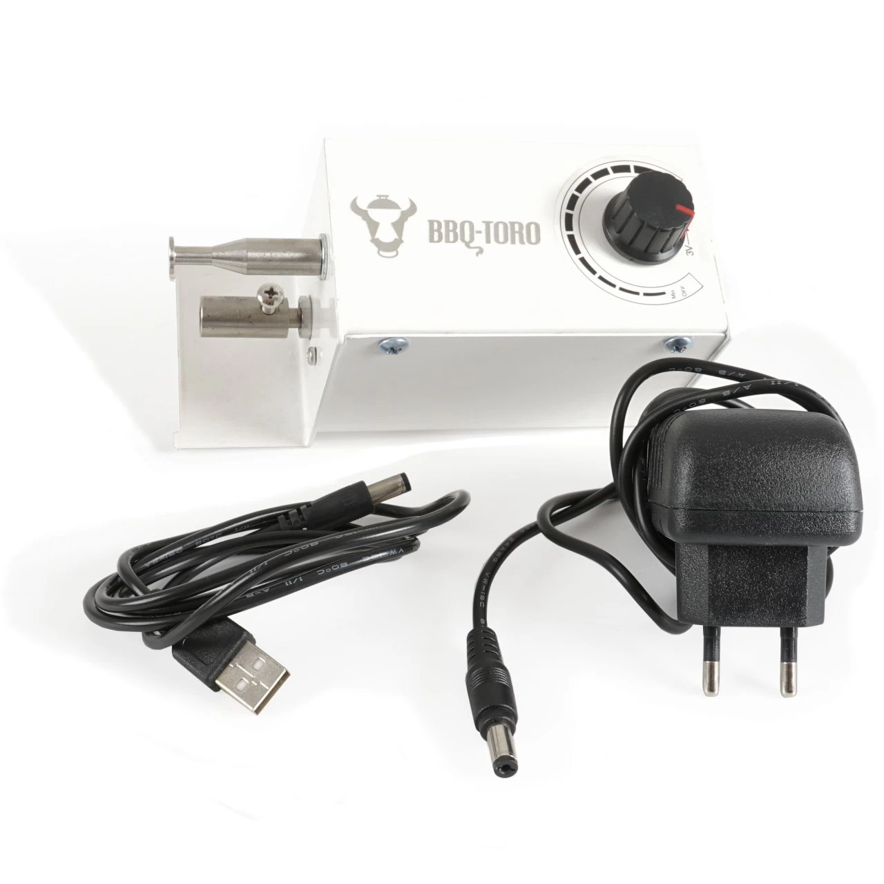 Mit dem elektrischen BBQ-Toro Spießdreher können Sie bequem und ohne großen Aufwand leckere Grillspieße herstellen. Durch den elektrischen Antrieb werden alle Spieße gleichmäßig gedreht und das Grillgut bleibt saftig und zart. Die Drehgeschwindigkeit kann am Motor stufenlos eingestellt werden.