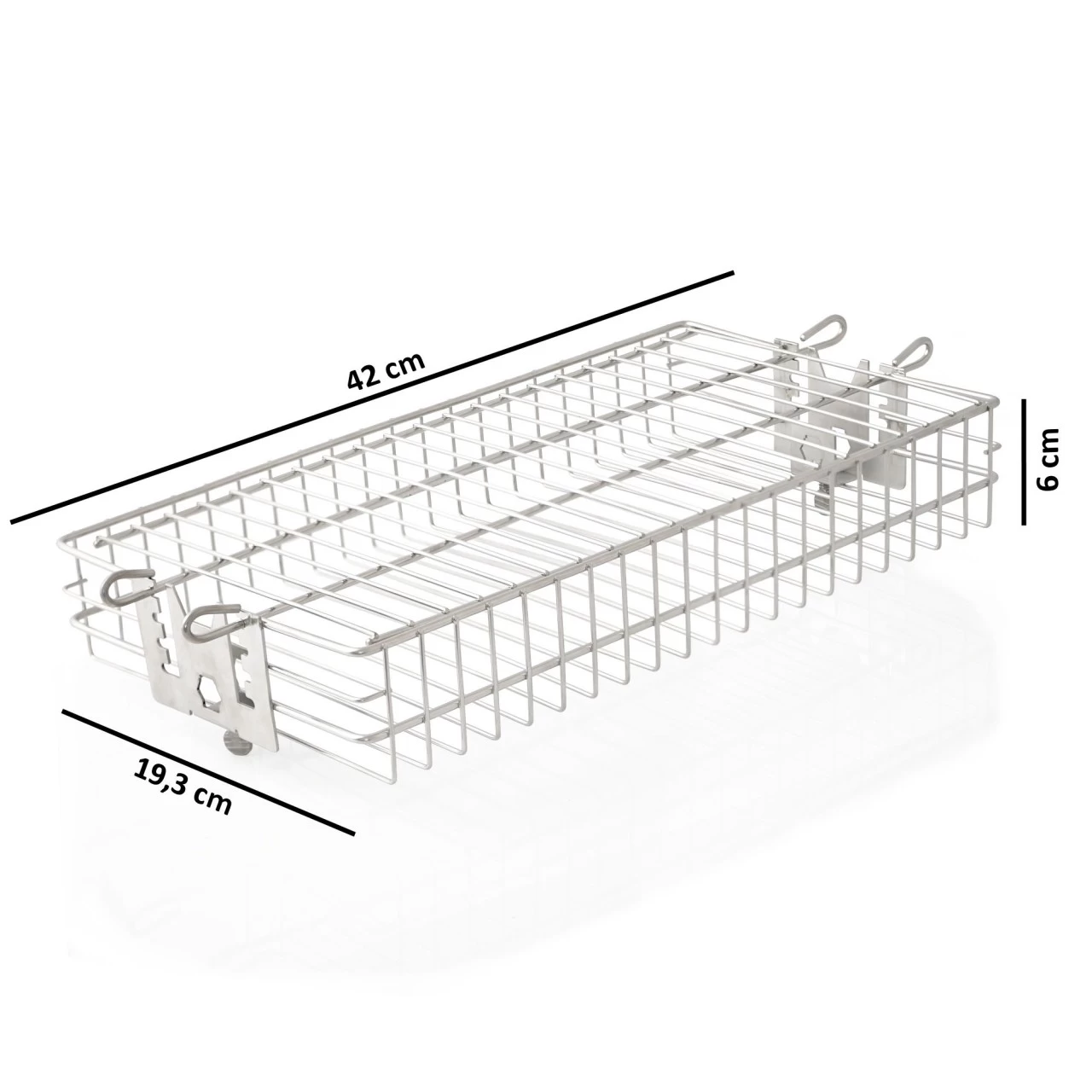 Erweitern Sie Ihren Grillspieß mit diesem Rondell. Das Grillrondell ist aus hochwertigem Edelstahl hergestellt und bietet genügend Platz für Ihr Grillgut. Egal ob Kartoffelspalten, kleine Fleischstücke, Hähnchen, Gemüse oder Grillkäse. Mit diesem BBQ-Rondell können Sie ideal „indirekt“ grillen. Die kontinuierliche Bewegung des Grillguts sorgt für gleichmäßiges Garen und Bräunen. Dank der 4-stufigen Verstellmöglichkeit können Sie das Grillgut fixieren und es bleibt saftig und fällt nicht auseinander.