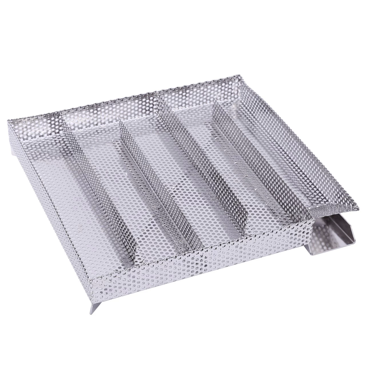 Der hochwertige und langlebige Kaltrauchgenerator ist aus rostfreiem V2A-Edelstahl hergestellt. Auf 5 Kammern verteilt mit insg. 27 x 26,5 cm können Sie Ihr Räuchermehl verteilen und bis zu 16 h Kalträuchern.