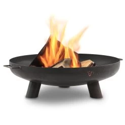Die Feuerstelle ist mit drei robusten Standbeinen ausgestattet, welche für einen sicheren Stand sorgen. Die große Feuerschale verfügt über zwei seitliche Griffe, die es ermöglichen, sie problemlos zu transportieren und zu lagern, wenn sie nicht in Gebrauch ist.