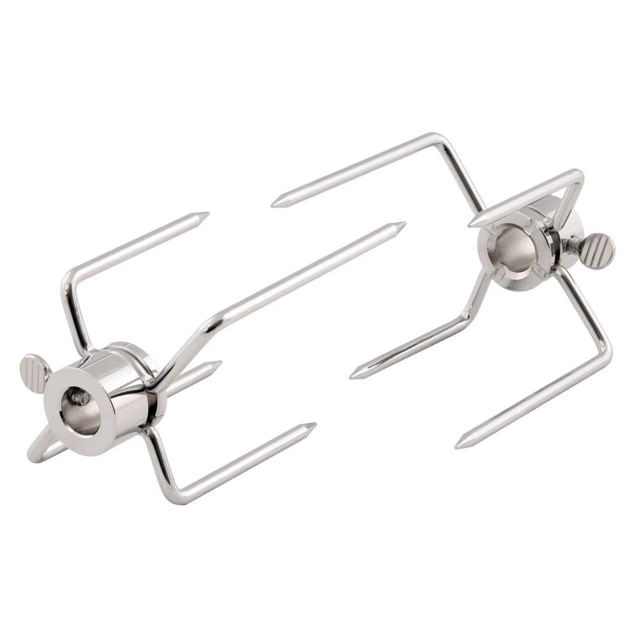 Egal ob Fleisch, Fisch, Gemüse oder anderes Grillgut, mithilfe dieser Fleischklammern kann das Grillgut besonders gut am Spieß fixiert und während des Grillens in Position gehalten werden.