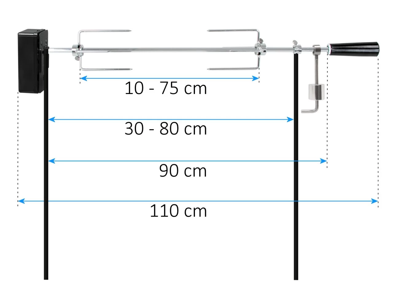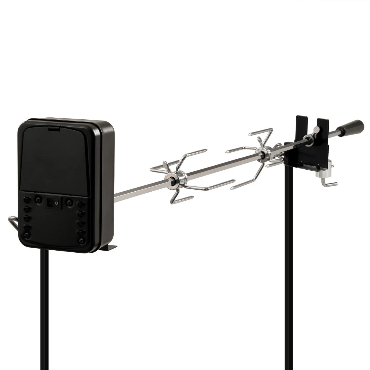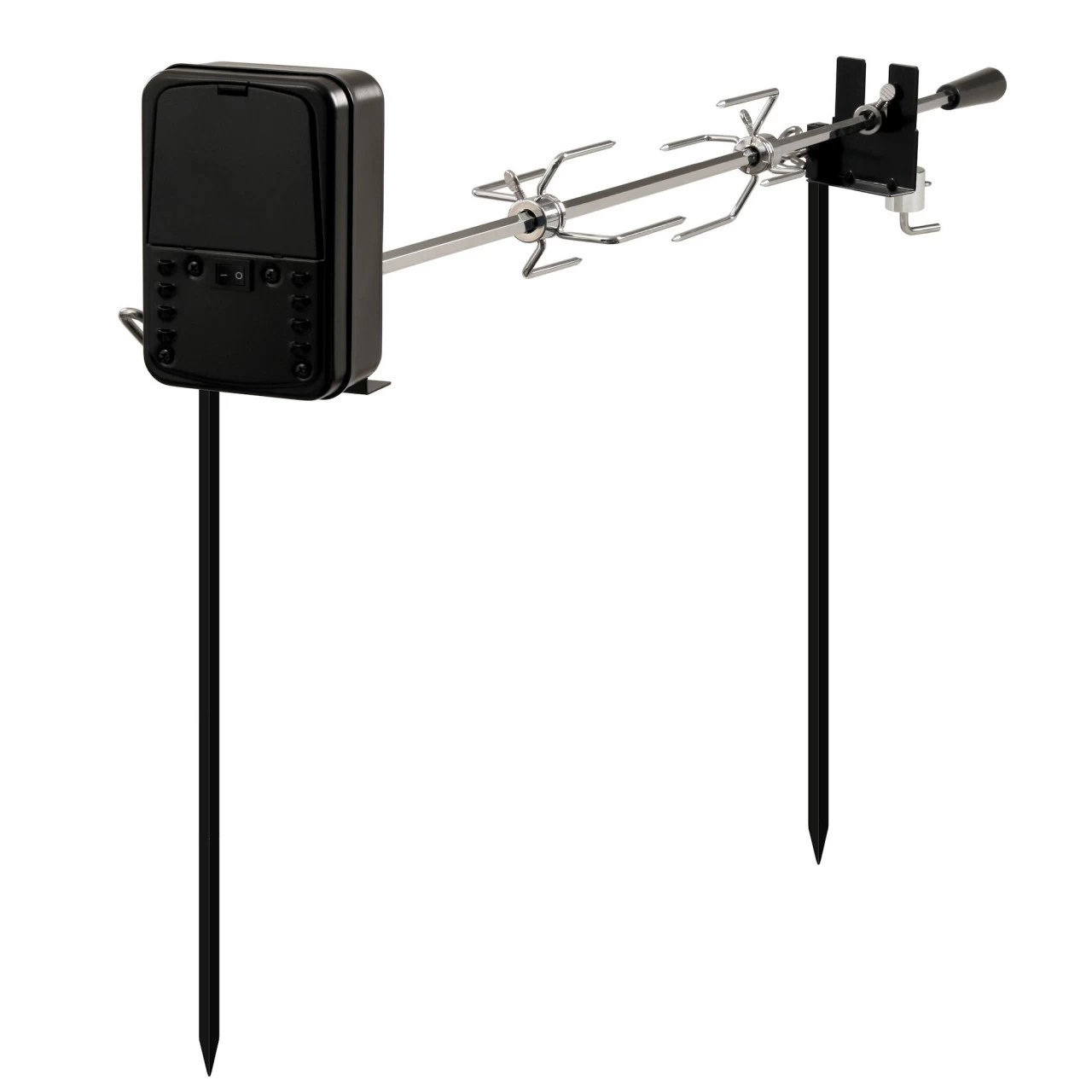– Lieferumfang: 1x Spieß, 1x Motor, 1x Motorhalter, 2x Aufstellstangen, 2x Fleischnadeln, 1x Lager, 1x Lagerhalter und 1x Ausgleichsgewicht