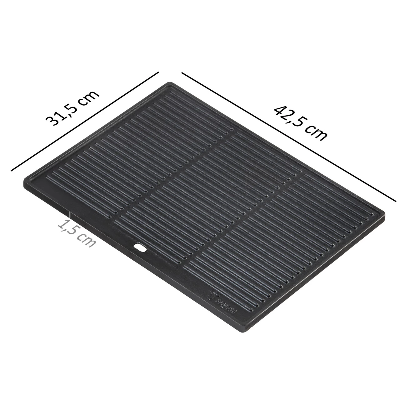 Die massive, rechteckige Grillplatte können Sie einfach auf Ihre Grillfläche legen und sofort nutzen. Die, aus 5-mm-starken Gusseisen gefertigte, Grillpfanne wiegt ca. 5,3 kg und passt in viele Gas- und Holzkohlegrills.