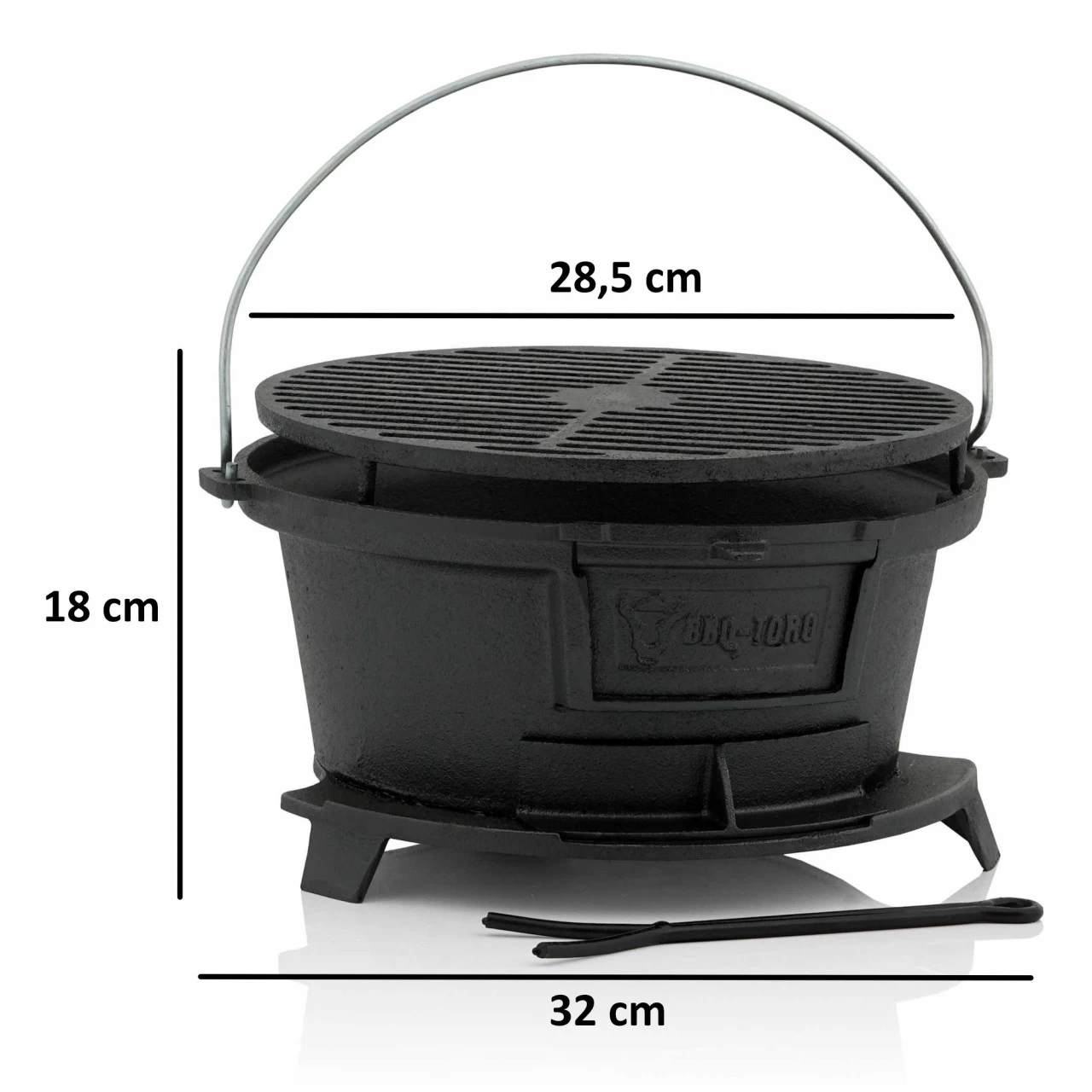 Mit dem BBQ-Toro Grilltopf sind Sie perfekt für ein Barbecue ausgestattet. Der, aus Gusseisen hergestellte, Grill ist bereits eingebrannt und kann direkt genutzt werden. Legen Sie Grillkohle oder Holz in den Grilltopf und entzünden dieses. Anschließend das Gusseisen Grillrost drauf. Nun kann es losgehen. Egal ob zu Hause im Garten, beim Camping oder Picknick – der Grilltopf ist mobil und lässt sich durch seinen Tragegriff überall mit hinnehmen.