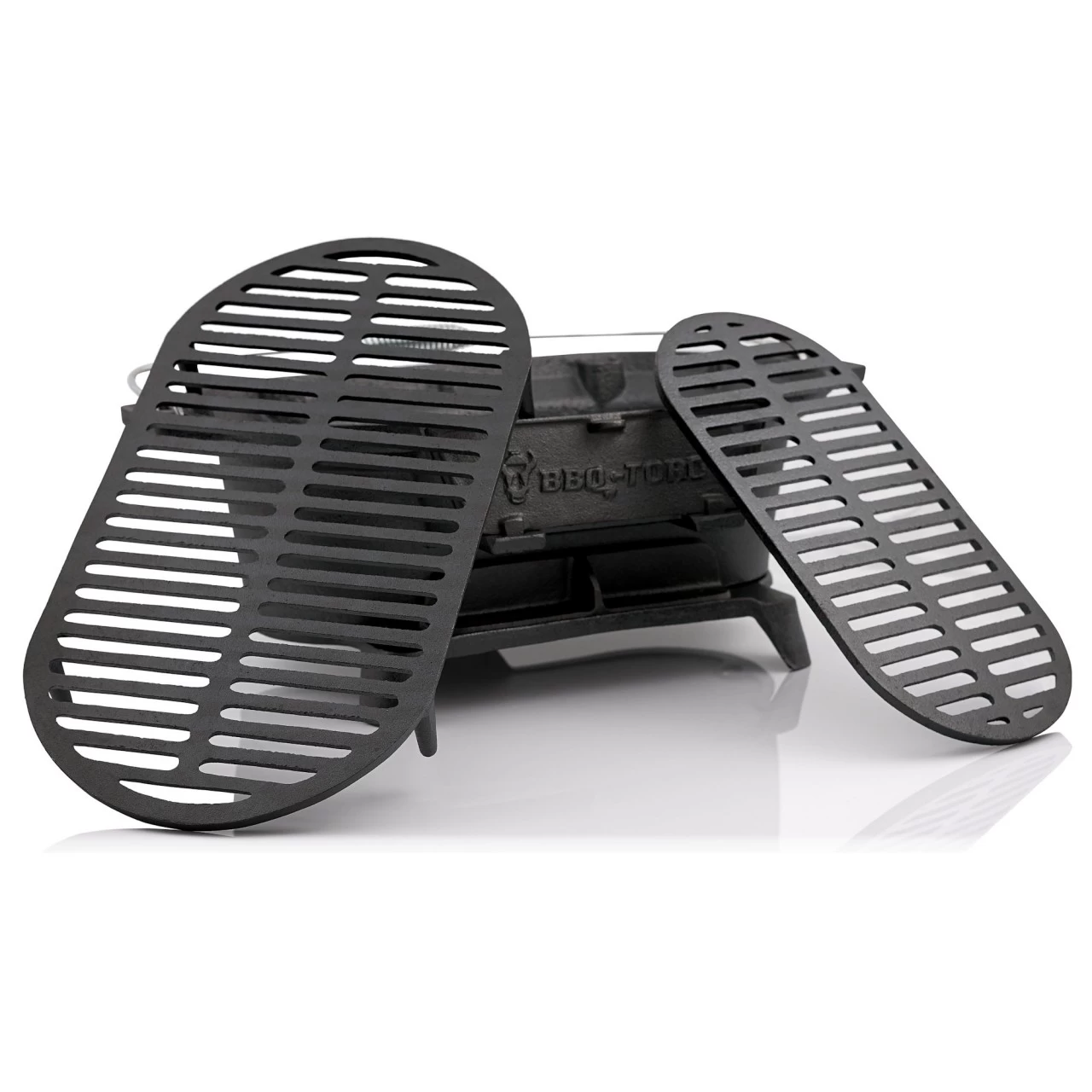 Das Grillrost hat vier Füße, mit denen es ideal auf dem Grilltopf steht. Sie können das Grillrost auch rumdrehen. So liegt es näher an der Grillkohle.