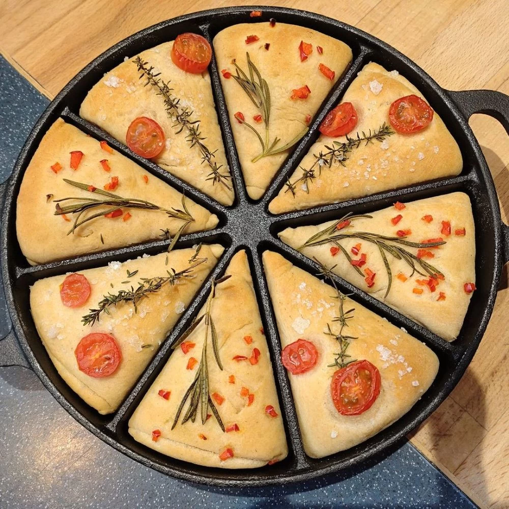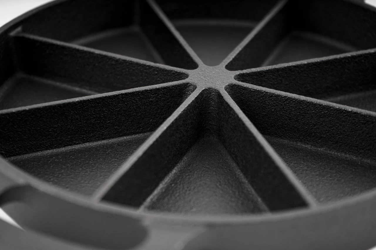 Unsere 8 in 1 Gusseisenpfanne ermöglicht das Grillen und Backen unterschiedlicher Zutaten und Speisen in nur einer Pfanne.