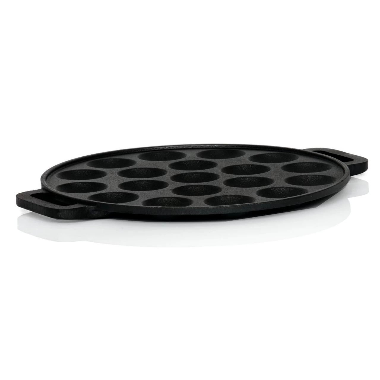 Die gusseiserne Poffertjes Form von BBQ-Toro ist die ideale Ergänzung zu Ihrer Grillküche, beim Camping oder beim Barbecue. Dank der abgeflachten Unterseite der Backform kann diese auf nahezu allen Gas-, Elektro-Herd, anderen Kochstellen und im Backofen genutzt werden. Oder stellen Sie die Förtchenpfanne direkt ins Feuer oder auf den Grill.