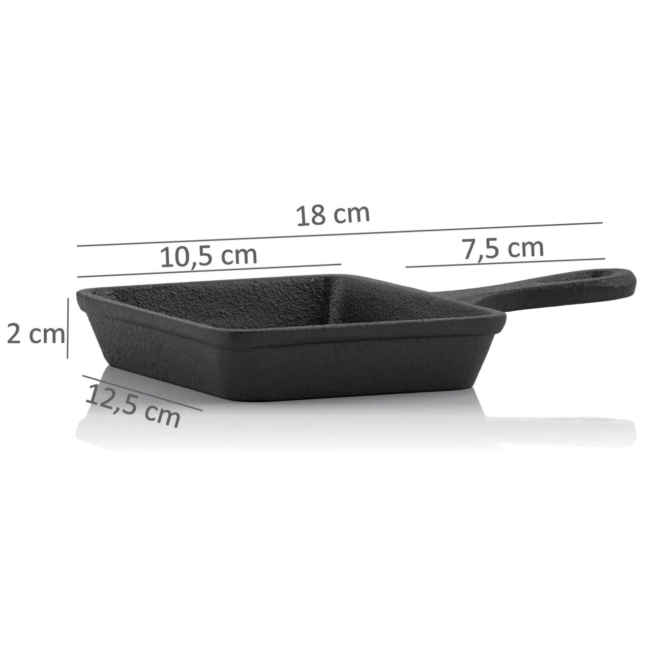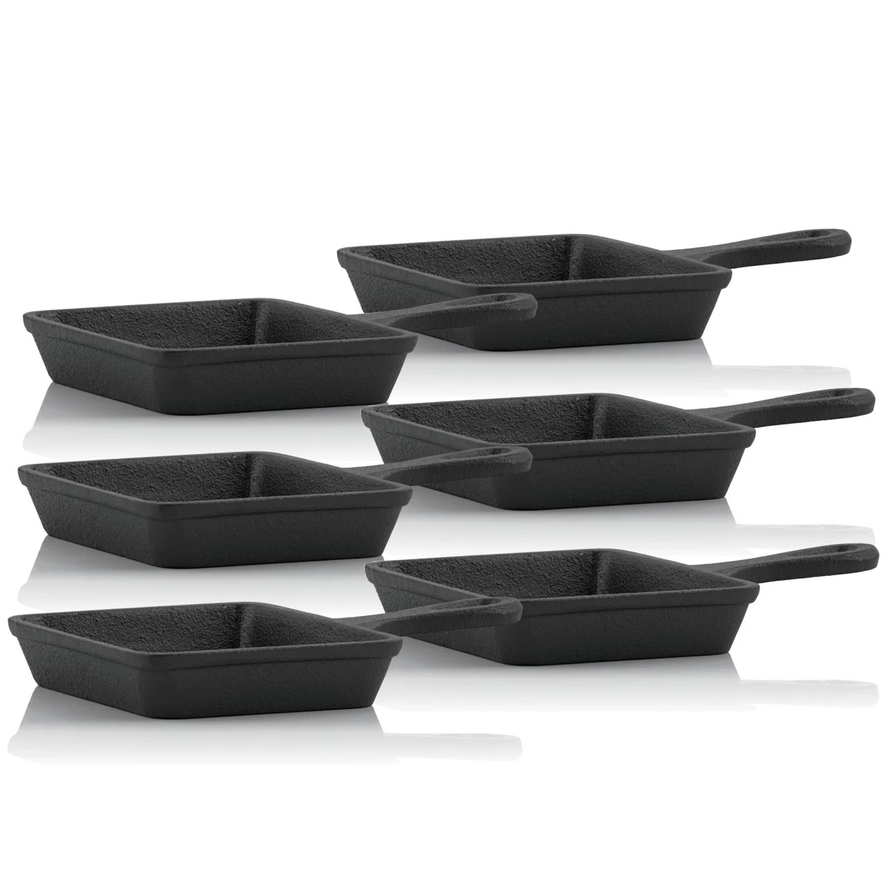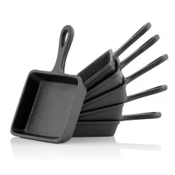 Sie können direkt mit dem Backen, Kochen oder Braten anfangen, da die Gusspfännchen bereits eingebrannt sind. Die kleinen Gusseisenpfannen regulieren dank ihrer hohen Masse (Gusseisen) ungleichmäßige Hitze und ermöglichen so ein gleichmäßiges Garen.