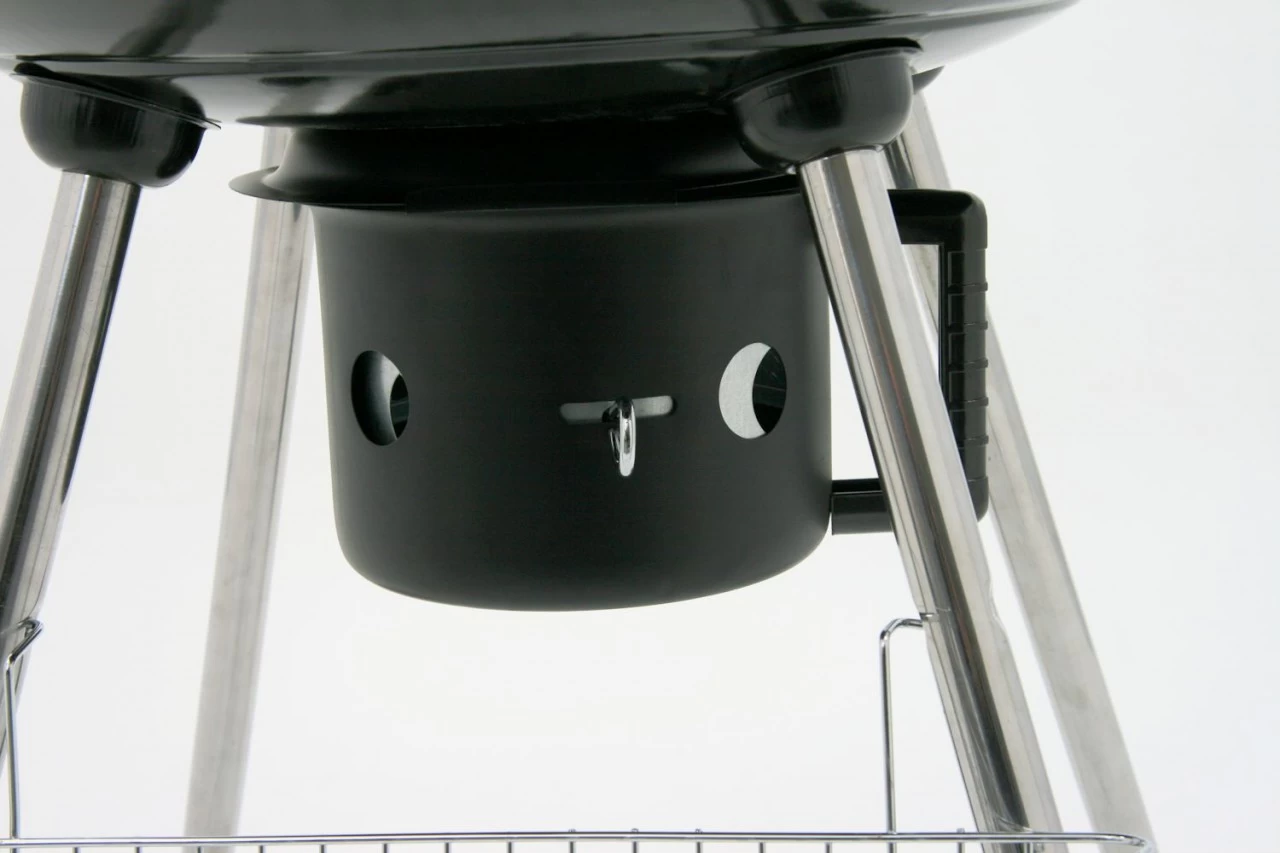 Der Kugelgrill hat zudem einen abnehmbaren Aschekasten mit Zuluftregulation. Hier können Sie die Zuluft bequem steuern und nach dem Grillen, die Asche entsorgen. Mit dem Luftschieber am Deckel können Sie die Abluft regulieren.