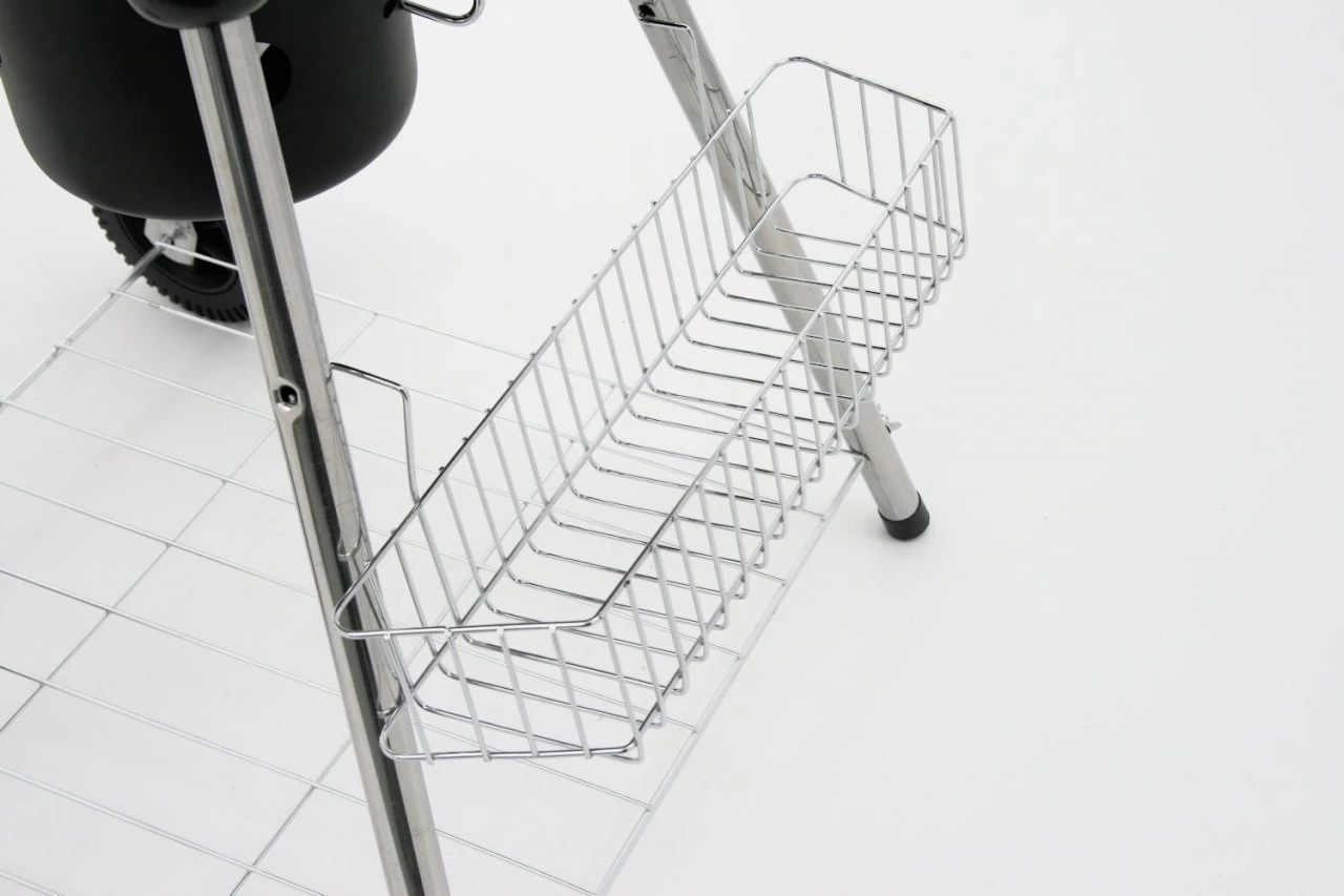 Die große Ablagefläche unterhalb der Kohleschale bietet Ihnen viel Stauraum für Ihre Grillkohle, Grillgut oder Ihr Grillwerkzeug. Zusätzlich befindet sich an den vorderen Beinen ein Korb, welcher sich ideal für Grillwerkzeug und weiteres Zubehör, wie z.B. Gewürze oder Öl, eignet.