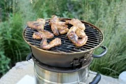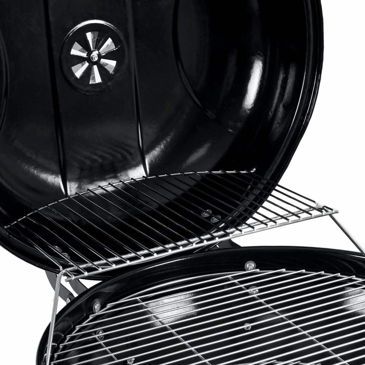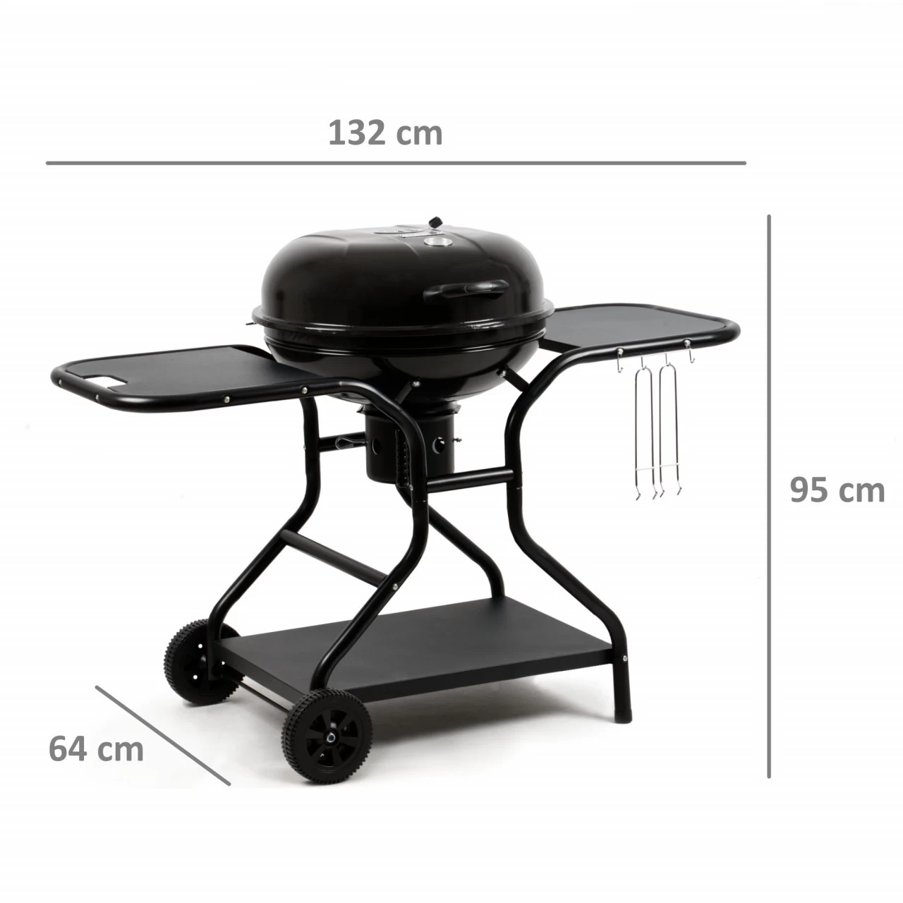Der Grillwagen ist mit einer Ø 54,5 cm großen Grillfläche ausgestattet. Damit haben Sie genügend Platz um verschiedene Speisen, wie Fleisch, Gemüse, Tofu und vieles mehr, gleichzeitig zuzubereiten.