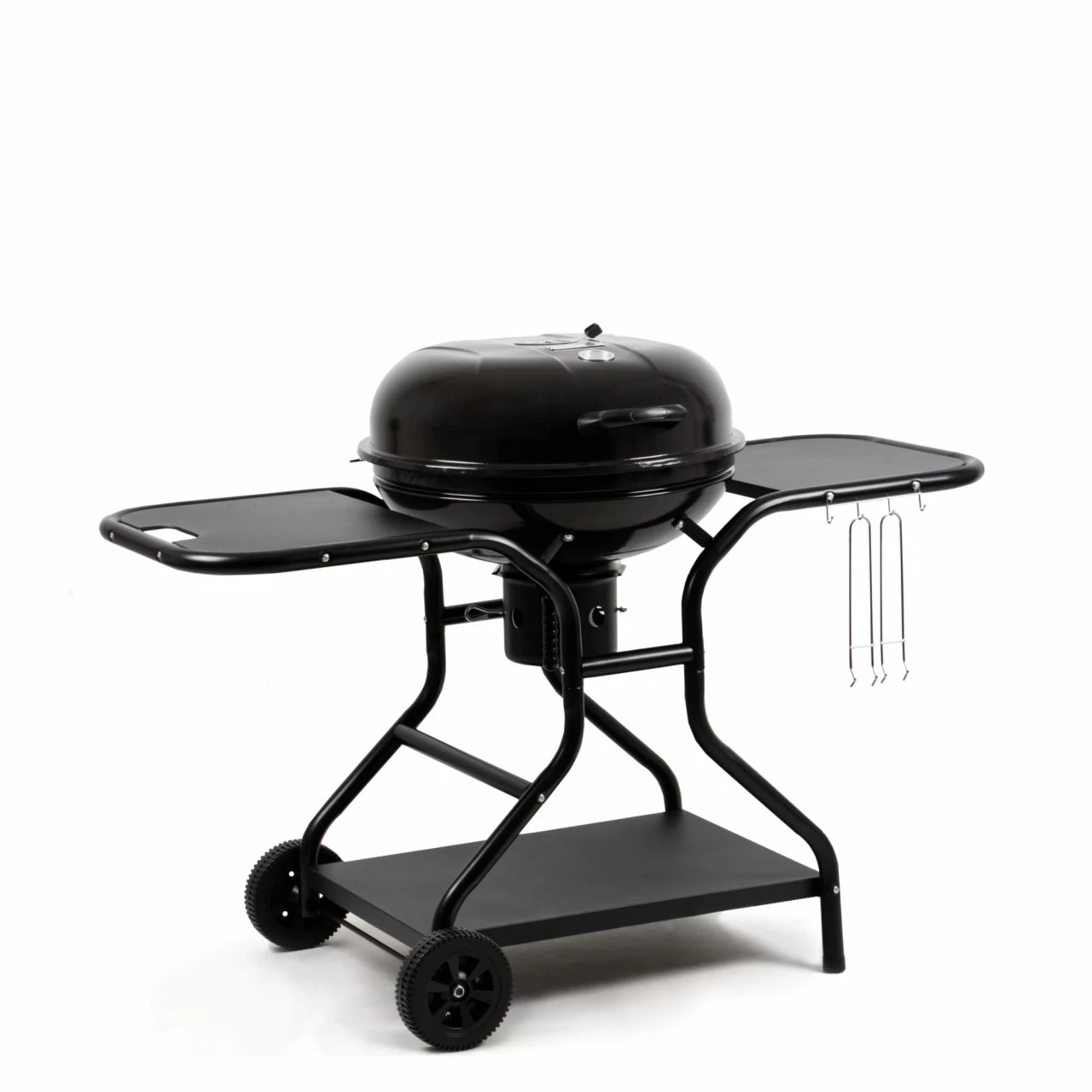 Die große Ablagefläche unterhalb der Kohleschale bietet Ihnen viel Stauraum für Ihre Grillkohle, Grillgut oder Ihr Grillwerkzeug. Die großen seitlichen Ablageflächen bieten Ihnen viel Platz, um Geschirr und Grillzubehör, wie Grillgut, Besteck und Kohle, abzulegen. Der robuste Deckelgriff garantiert schnelles Öffnen und Schließen des Deckels mit nur einer Hand. Dank der montierten Laufräder kann der Grillwagen im Handumdrehen platzsparend verstaut werden. Die 2 stabilen Räder ermöglichen ein leichtes Verschieben und einen sicheren Transport.