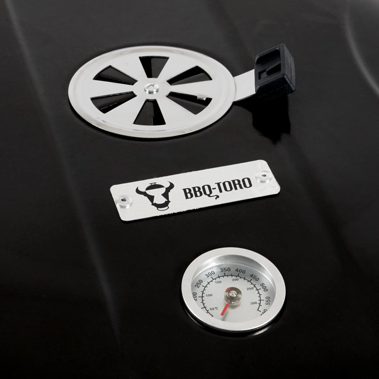 Der Kugelgrill hat zudem einen abnehmbaren Aschekasten mit Zuluftregulation. Hier können Sie die Zuluft bequem steuern und nach dem Grillen, die Asche entsorgen. Mit dem Luftschieber am Deckel können Sie die Abluft regulieren. Mithilfe des großen Thermometers im Deckel können Sie die Temperatur innerhalb Ihres Grills gut ablesen und Ihre Speisen auf den Punkt genau grillen.