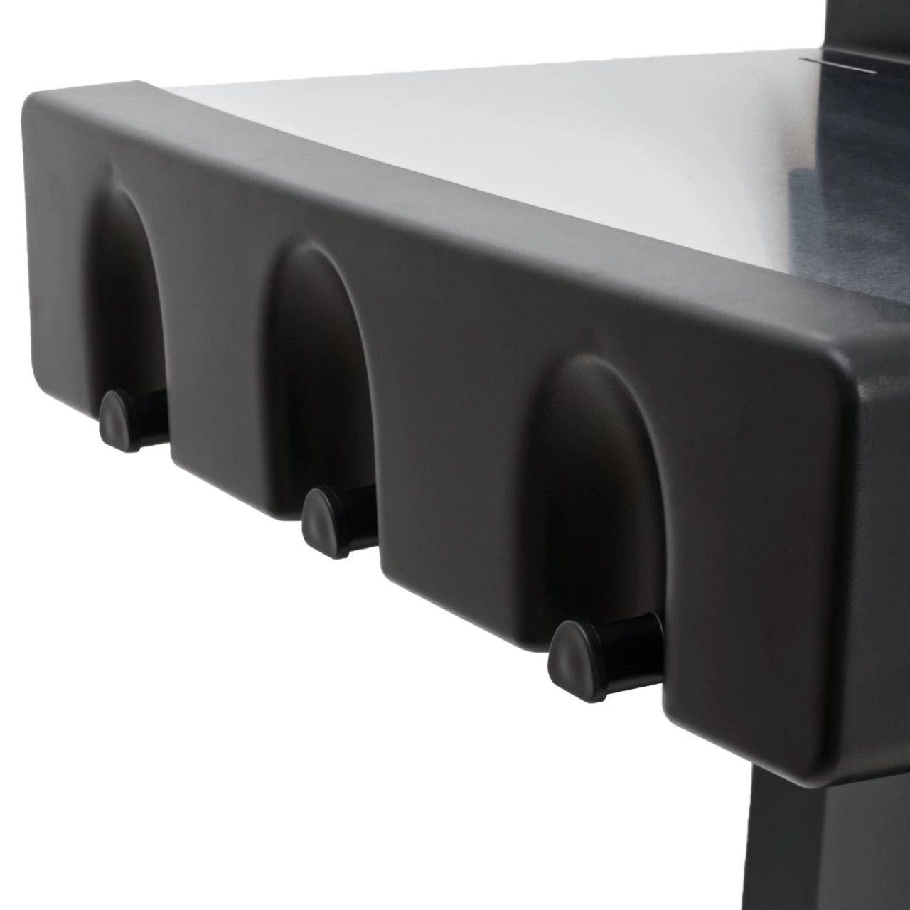 – An jeder der beiden seitlichen Ablagen sind 3 Haken zum Aufhängen von Grillbesteck, Handschuhen und anderem Zubehör