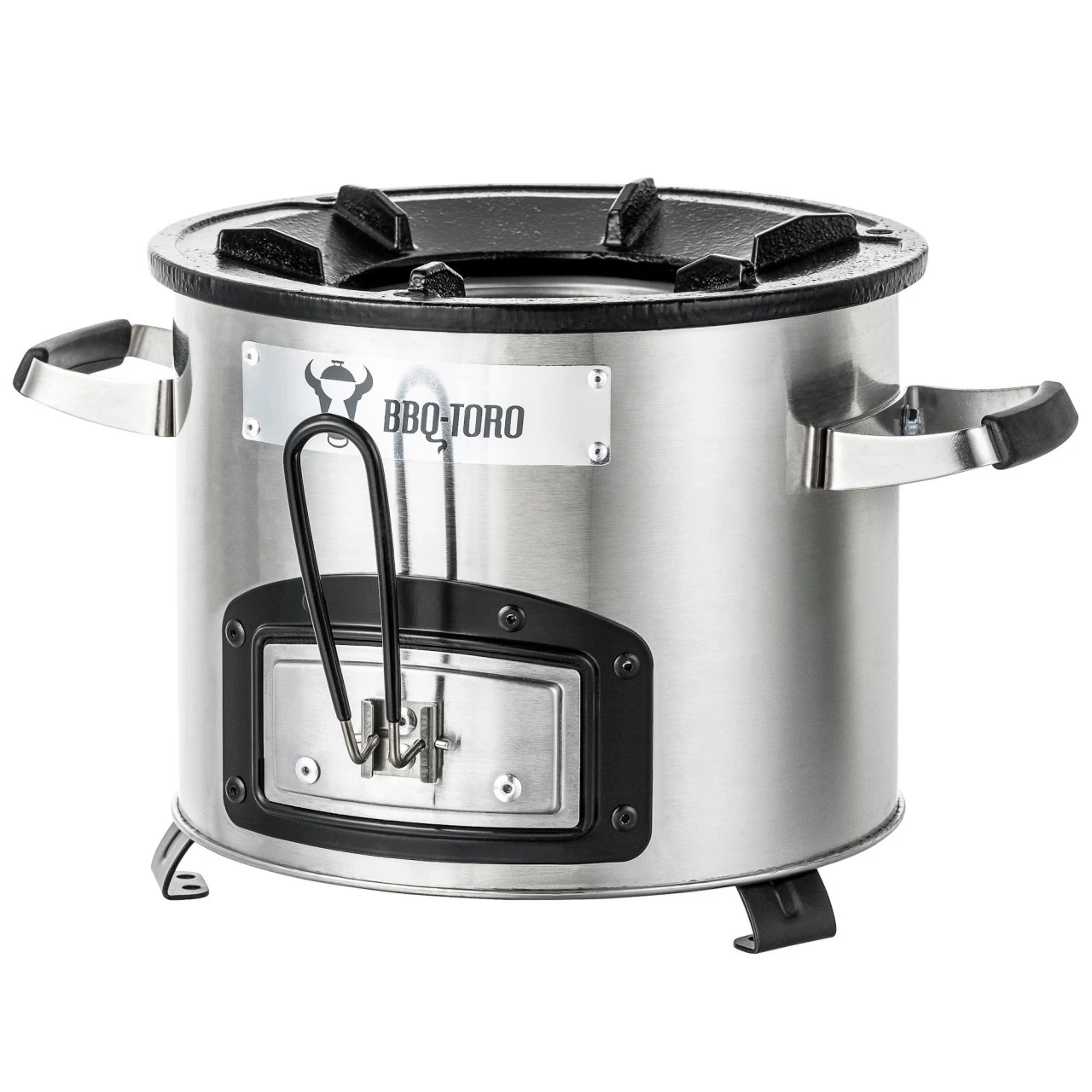 Die Luftzufuhr kann durch die Ascheschublade einfach geregelt werden. Die praktische 6-Punkt-Topfhalterung gibt Ihrem Dutch Oven oder Ihrer Gusspfanne einen optimalen halt. Zusätzlich ist der Raketenofen mit komfortablen Edelstahlgriffen mit Gummierung ausgestattet. Die Griffe lassen sich auch beim heißen Ofen noch anfassen.
