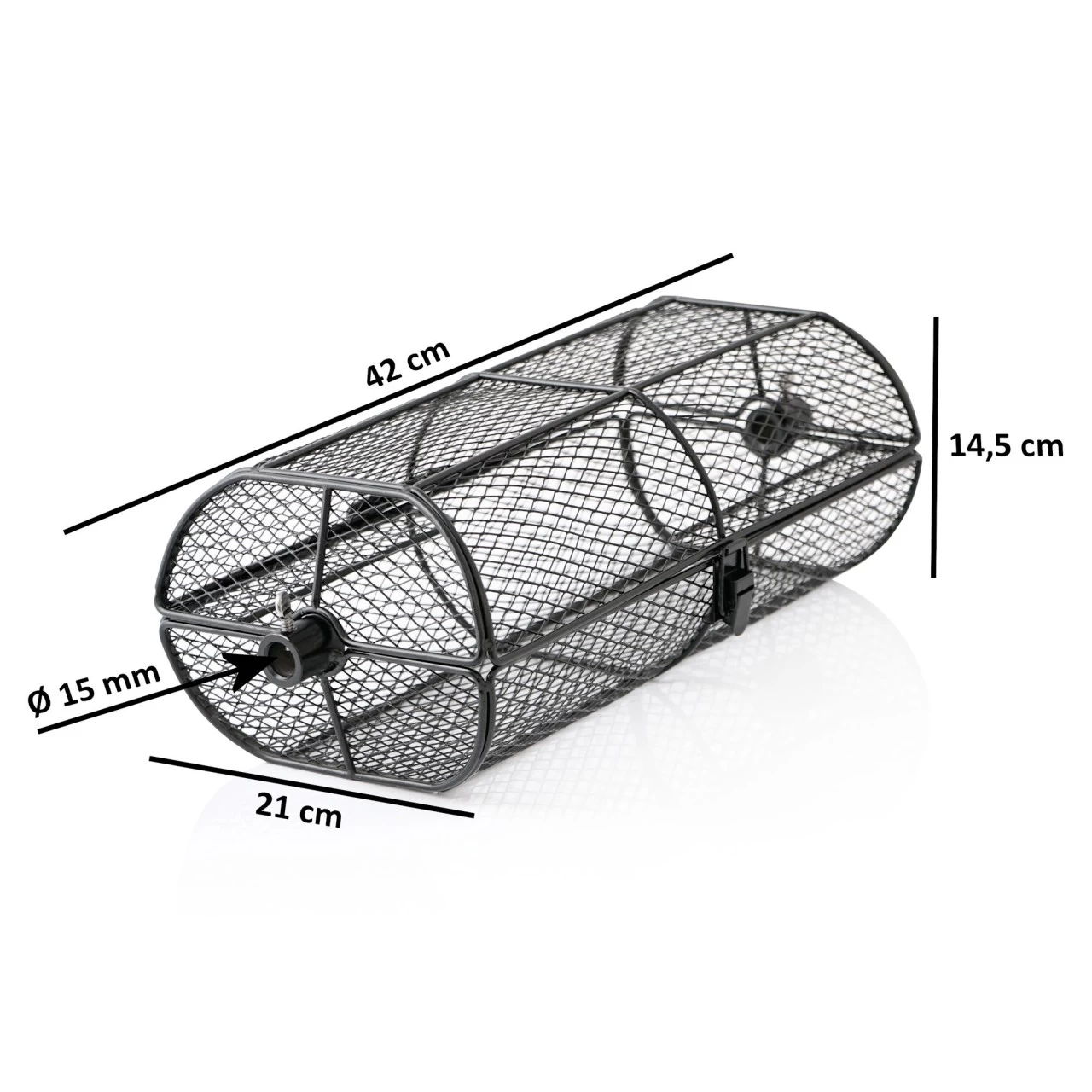 Der Grillkorb passt auf alle gängigen Grillspieße bis Ø 15 mm (ACHTUNG: Grillspieß nicht im Lieferumfang enthalten!). Bitte auf ein Mindestmaß der Grillfläche von 45 x 25 cm achten!