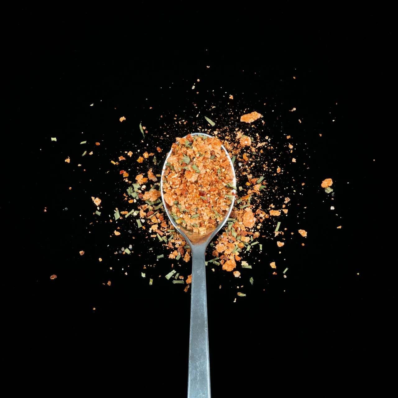 Zutaten: Meersalz, Gewürze (Paprika, Tomate, Pfeffer, Ingwer, Koriander, Chili, Bockshornklee, Kurkuma), Schnittlauch