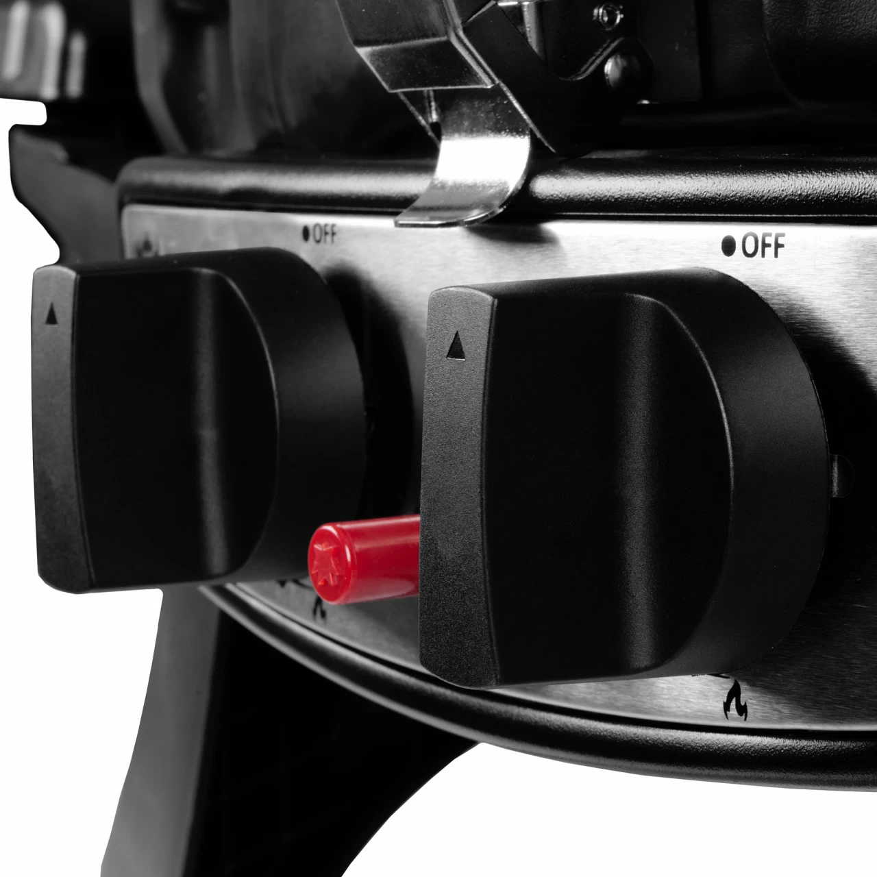 Die 2 Hochleistungs-Brenner sind einfach und stufenlos zu bedienen. Die Brenner können separat eingestellt und durch den Piezo-Zünder gezündet werden. Trotz seiner kompakten Größe von 109 x 55 x 36 cm schafft der 2-Brenner Gasgrill es auf eindrucksvolle 5 kW.