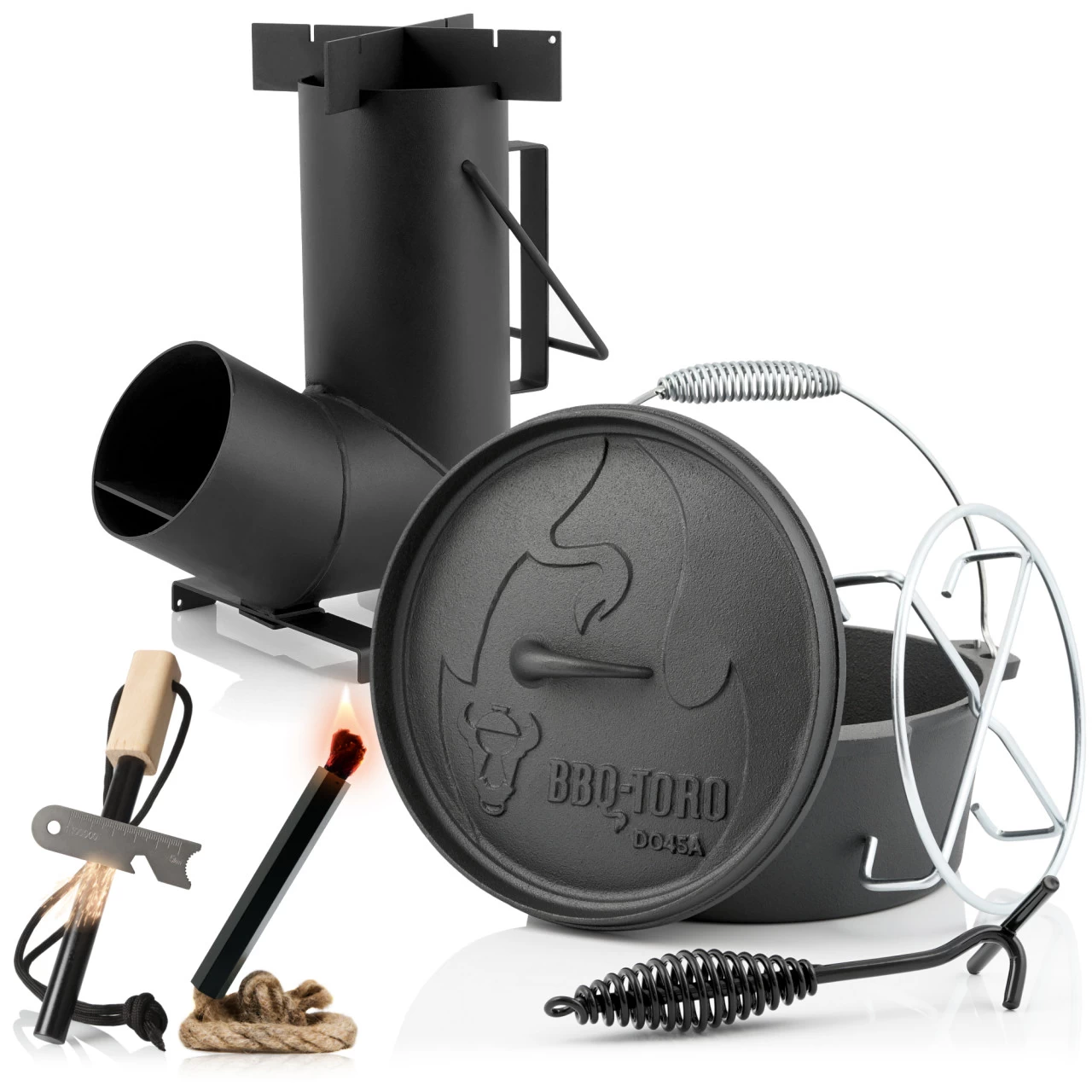 – 1x Raketenofen, 1x Dutch Oven, 1x Feuerstahl, 1x Zunder