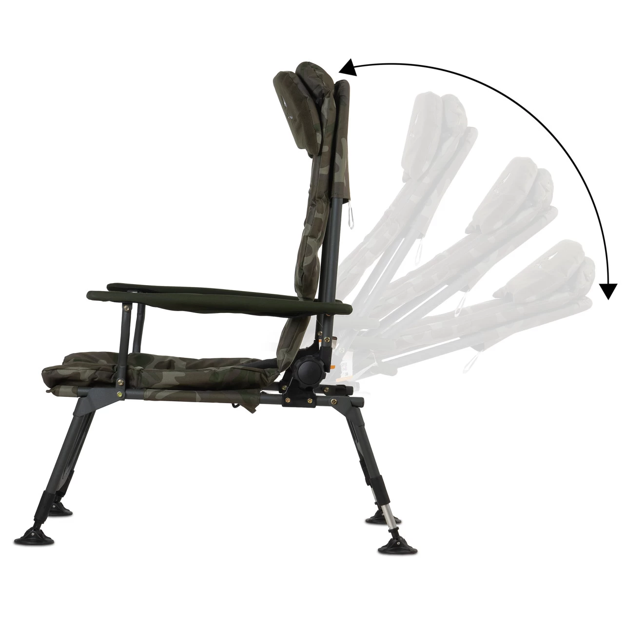 Der CampFeuer Angelstuhl mit olivgrünem Tarnmuster ist der perfekte Begleiter. Egal ob beim Campen, Zelten, Trekking, Angeln, für den Kurzurlaub oder beim Abenteuer-Trip. Die Rückenlehne des Stuhls ist verstellbar und lässt sich einfach mithilfe von zwei Drehknöpfen bis hin zur Liegeposition verstellen.