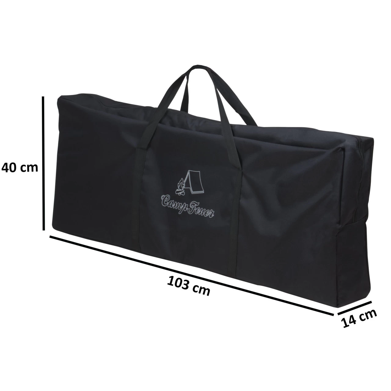 Der Lieferumfang beinhaltet zusätzlich eine Tragetasche, die nicht nur den komfortablen Transport zum nächsten Campingort ermöglicht, sondern auch eine geschützte Aufbewahrung gewährleistet.