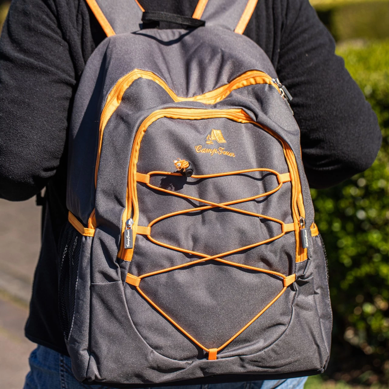 Die geräumige CampFeuer Isotasche kann über den 2-Wege Reißverschluss so weit geöffnet werden, dass man den Deckel komplett zur Rückseite aufklappen kann. Dies erleichtert sehr das Befüllen und Entnehmen von Lebensmitteln. Besonders praktisch ist die zusätzlich Tasche im Deckel, dort können Sie Handy, Schlüssel oder Ihr Besteck verstauen. Bei einer Kapazität von 30 Litern bekommt man ausreichend Essen und Getränke für mindestens 4 Personen verstaut. Weiteren Stauraum bietet die Fronttasche und die 2 Netztaschen an den Seiten. Das flexible Gummiband mit Klemmverschluß eignet sich perfekt für Kleidung oder eine Picknickdecke.