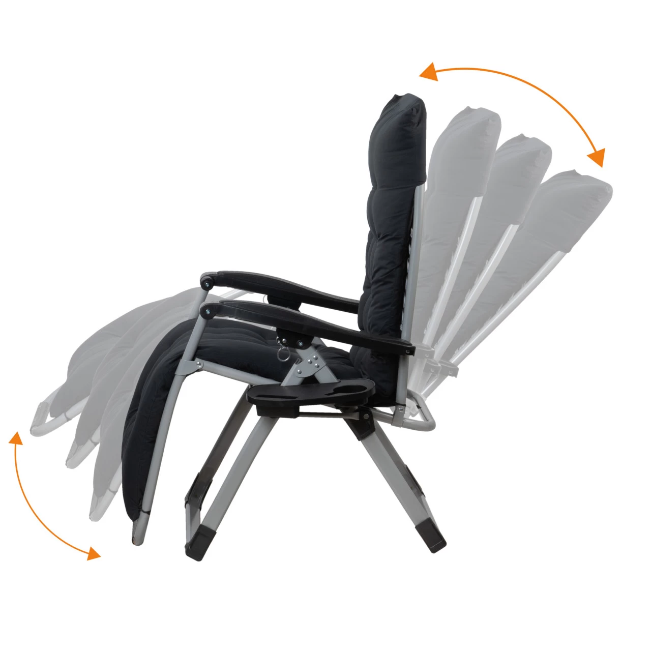 Die verstellbare Klappliege bietet mit ihren verschiedenen Liegepositionen und dem gemütlichem Polster stets höchsten Komfort. Dank der stufenlos einstellbaren Rückenlehne können Sie die Liege ganz nach Ihren Wünschen anpassen. Mit Hilfe der Clips können Sie den Stuhl anschließend mühelos in Ihrer gewünschten Position feststellen. So genießen Sie jederzeit optimalen Liegekomfort, ganz nach Ihren Bedürfnissen.