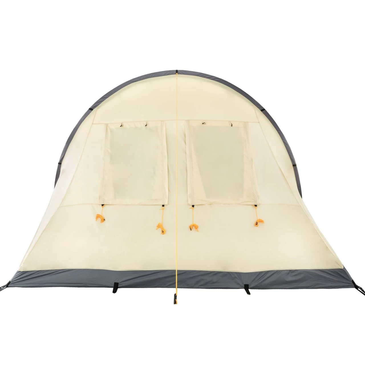 Das Tunnelzelt bietet mit seinen großen 475 x 305 x 205 cm genügend Platz für 4 Personen. Der Zeltstoff ist aus 190T Polyester und hat zusätzlich eine PU-Beschichtung. Mit einer Wassersäule von 5000 mm schützt Sie der Zeltstoff ideal vor Regenschauern. Der, mit dem Außenzelt vernähte, Boden ist aus PE-Folie gefertigt. Mit einem Packmaß von 72 x 39 x 33 cm und einem Gewicht von ca. 19,3 kg ist das Zelt handlich zu transportieren. Das Zelt wird, in einer Tasche gepackt, geliefert. Desweiteren liegen dem Lieferumfang: Fiberglasgestänge, Aufstellstangen, Erdnägel und Abspannseile bei. Tipp: Spannen Sie Ihr Zelt nicht zu stramm ab! So bleiben auch die Zeltnähte verschlossen und falls Sie beim Campen ein Regenschauer erwartet, haben Sie dennoch trockene Nächte.