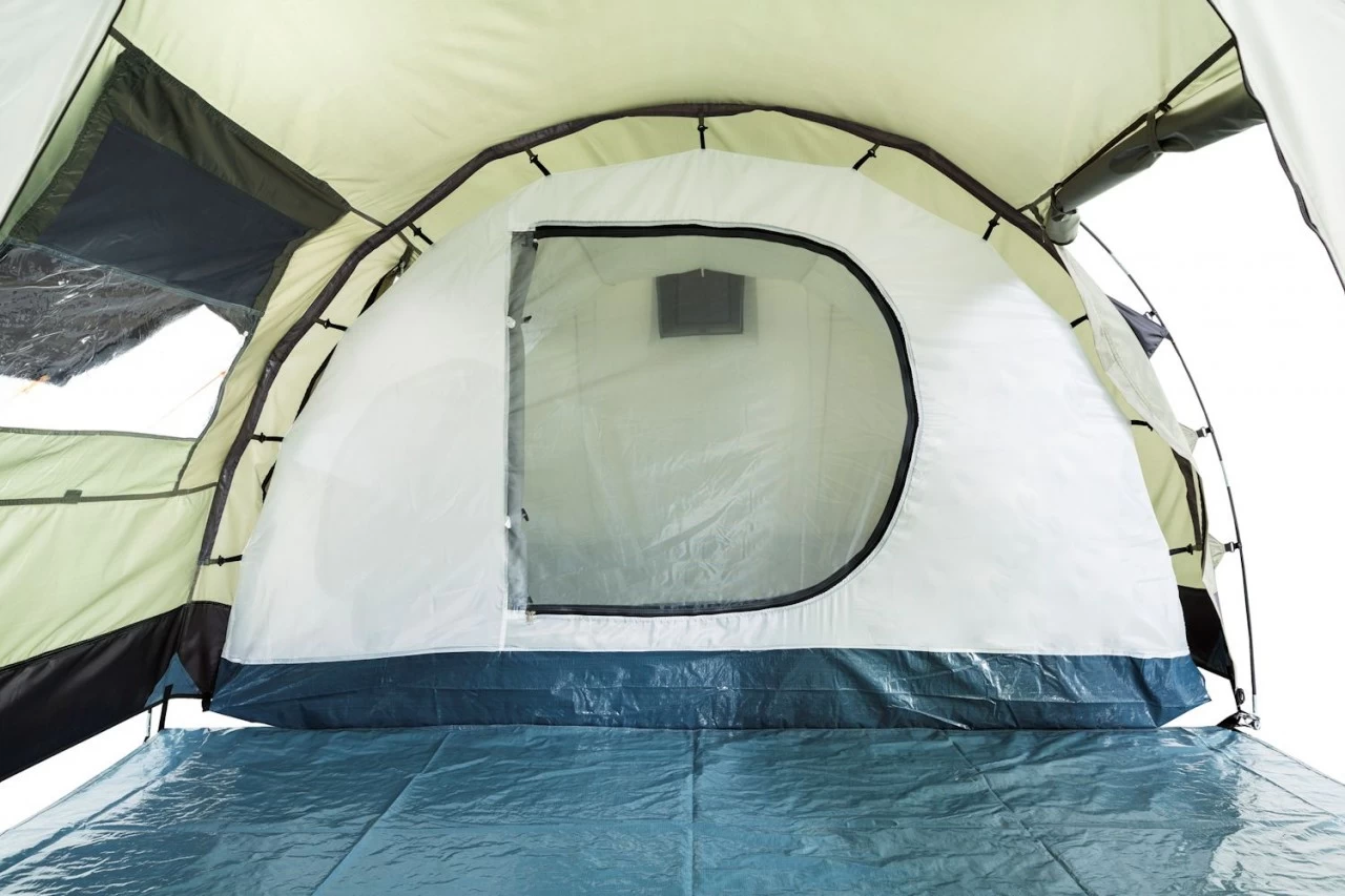 Überzelt: 100% Polyester, Schlafkabine: 100% Polyester, Zeltboden: 100% Polyethylen