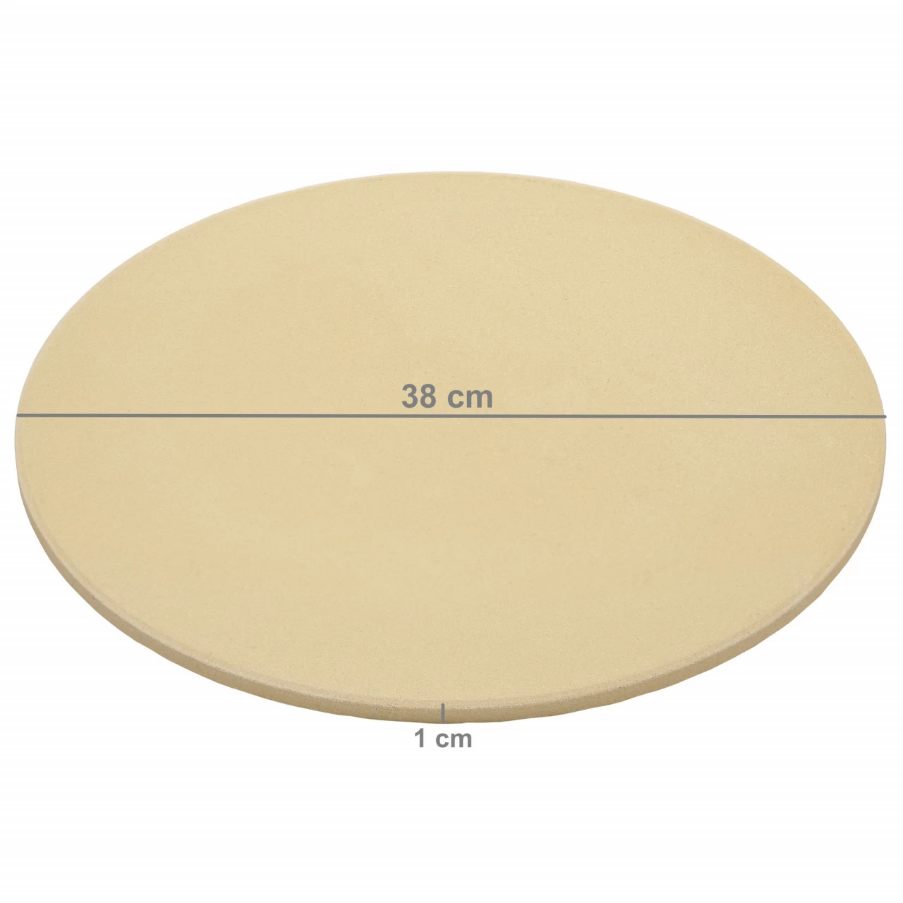 Dank seines Materials speichert der Ø 38 cm große Cordierit-Stein ideal die Wärme und gibt sie gleichmäßig ab. Zusätzlich nimmt der Stein die überschüssige Flüssigkeit des Teigs auf, wodurch der Pizzaboden extra knusprig wird.