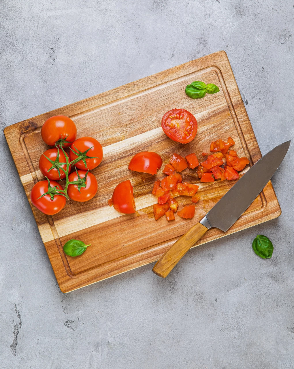 Das Küchenbrett verfügt über eine praktische Saftrinne, somit erleichtert es das Schneiden von Tomaten oder anderem wässrigen Gemüse. Das Brett ist beidseitig nutzbar!