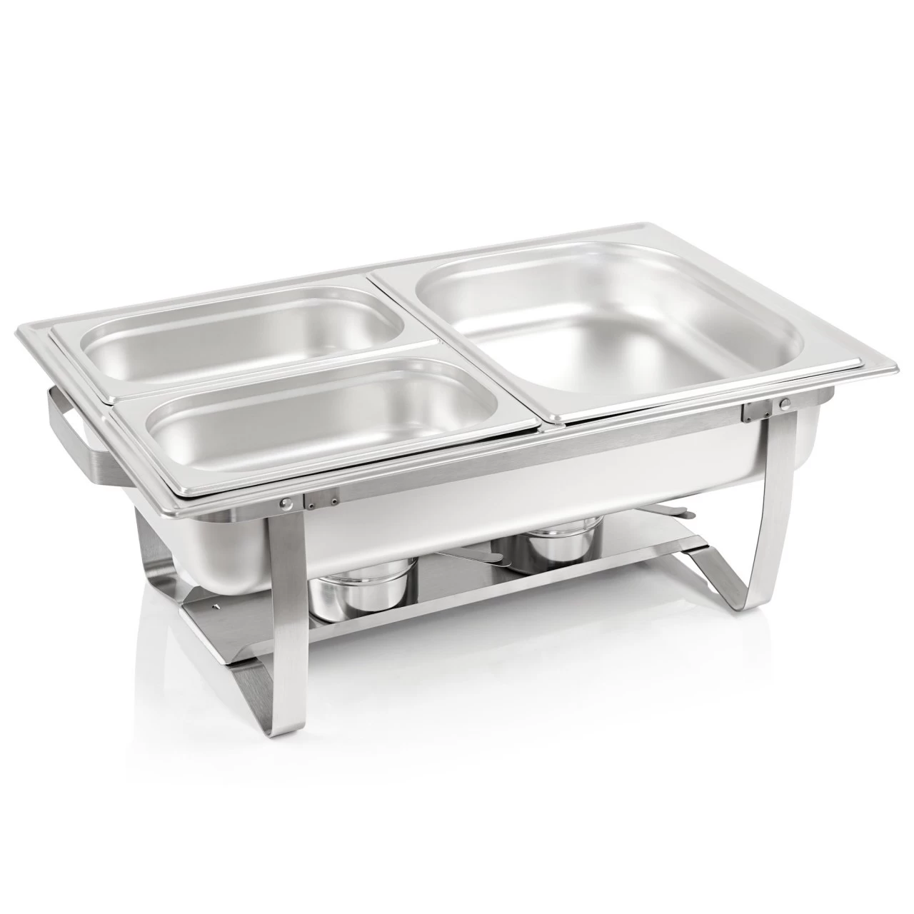 Im Lieferumfang sind neben dem Deckel auch zwei Brennpastenbehälter. Der Chafing dish eignet sich hervorragend für Feiern, Feste, Catering, Gastronomie und vieles mehr.