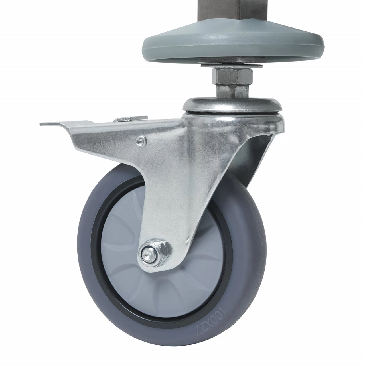 Dank der montierten vier Leichtlaufräder kann der Etagenwagen einfach manövriert werden. Die integrierten Feststeller sorgen dafür, dass der Wagen schnell und einfach an der gewünschten Position fixiert werden kann.