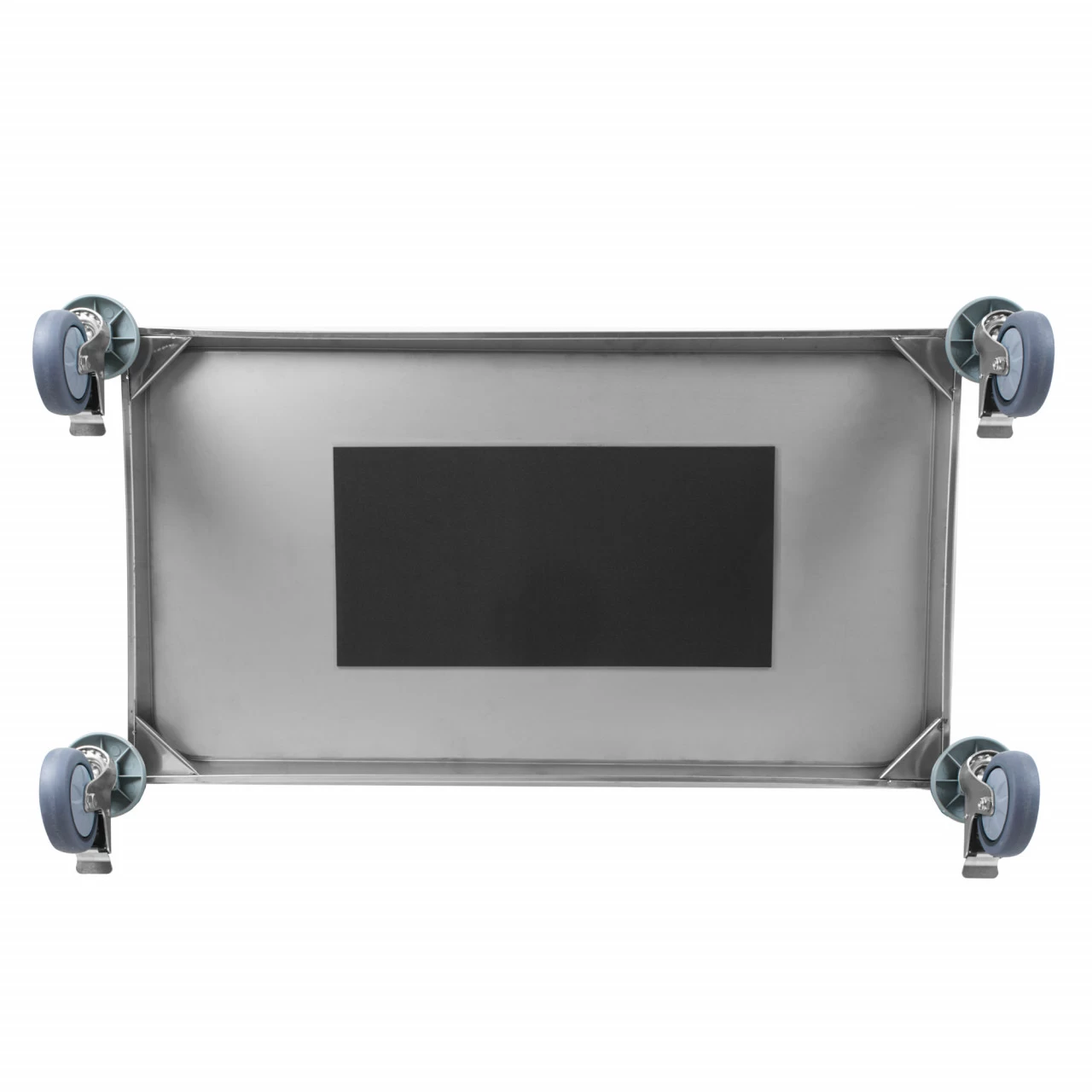 Der Catering Wagen besteht aus hochwertigem Edelstahl. Dadurch ist dieser besonders robust, widerstandsfähig und begünstigt eine leichte Reinigung.