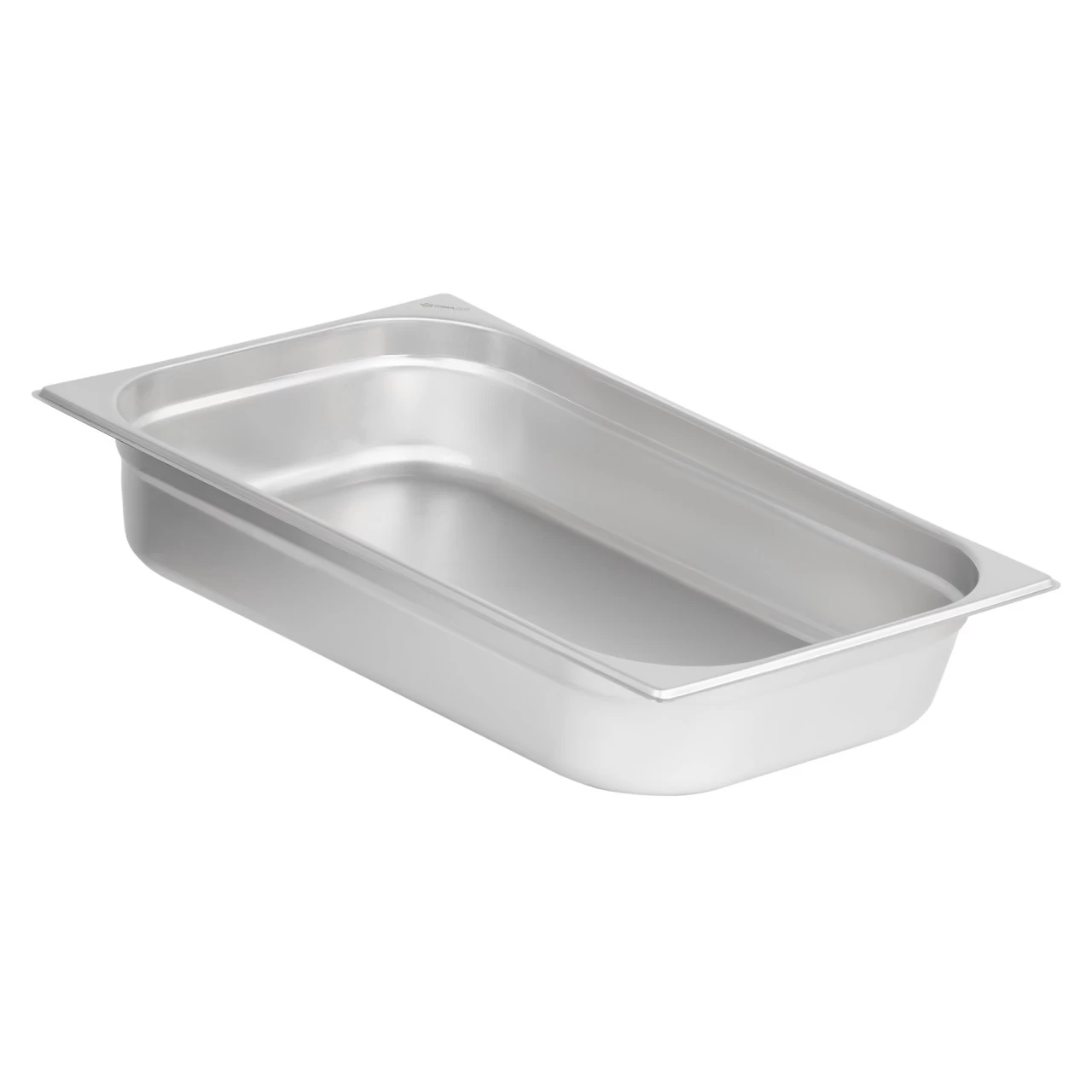 Der Gastronorm-Behälter ist für Lebensmittel aller Art geeignet und aus hochwertigem Edelstahl gefertigt. Dadurch ist der Einsatz langlebig und besonders leicht zu reinigen.
