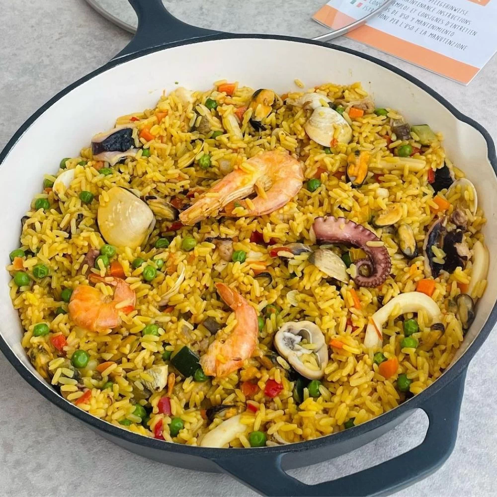 Die Pfanne mit Deckel von Mahlzeit eignet sich bestens zum Braten, Schmoren, Kochen und Zubereiten von Fleisch, Fisch, Gemüse und vielen weiteren Gerichten. Die Gusseisen-Pfanne verfügt über eine gute Wärmeleitung und verteilt die Hitze gleichmäßig auf das Bratgut.
