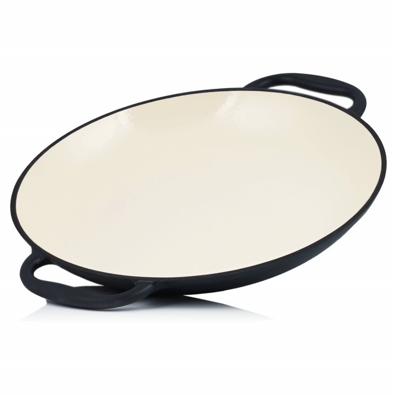 Die emaillierte Gusseisenpfanne von Mahlzeit eignet sich bestens zur Zubereitung von spanischer Paella, zum Braten von Fisch, Fleisch oder Meeresfrüchten. Auch zum Schmoren von Gemüse und vielen anderen Gerichten ist sie hervorragend geeignet. Die Emaille-Pfanne verfügt über eine gute Wärmeleitung und verteilt die Hitze gleichmäßig auf das Bratgut.