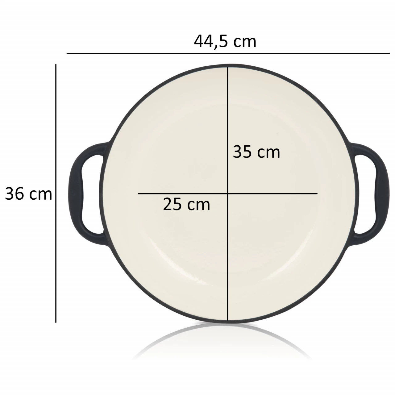 Mit einem Durchmesser von 35 cm bietet die Gußeisenpfanne genügend Platz für ausreichendes Bratgut. Das Gewicht von ca. 3,9 kg sorgt für einen sicheren Stand. Die emaillierte Pfanne ist die ideale Ergänzung zu Ihrem Küchenequipment.