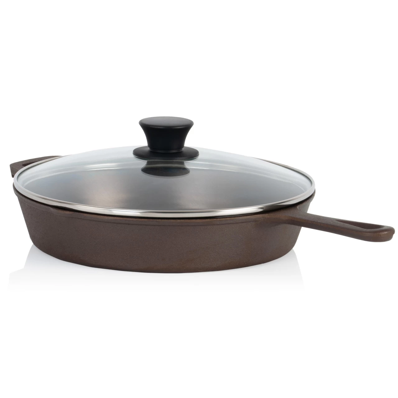 – Lieferumfang: 1x Polierte Gusspfanne mit Glasdeckel