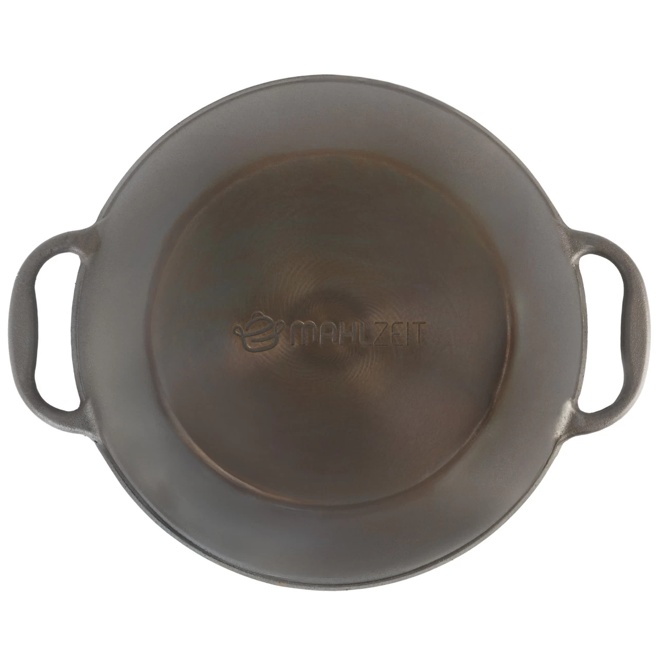 Die polierte Gusseisenpfanne von Mahlzeit eignet sich bestens zur Zubereitung von spanischer Paella, zum Braten von Fisch, Fleisch oder Meeresfrüchten. Auch zum Schmoren von Gemüse und vielen anderen Gerichten ist sie hervorragend geeignet. Die Pfanne verfügt über eine gute Wärmeleitung und verteilt die Hitze gleichmäßig auf das Bratgut.