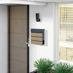 Zelsius Briefkasten Wood Mit Zeitungsfach Integrierter Soft-Close-Effekt RAL7016 Anthrazit Holzoptik