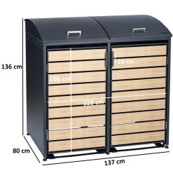 Zelsius Mülltonnenbox Mit Abgerundetem Deckel Für Zwei 120 – 240 Liter Mülltonnen, Anthrazit RAL7016
